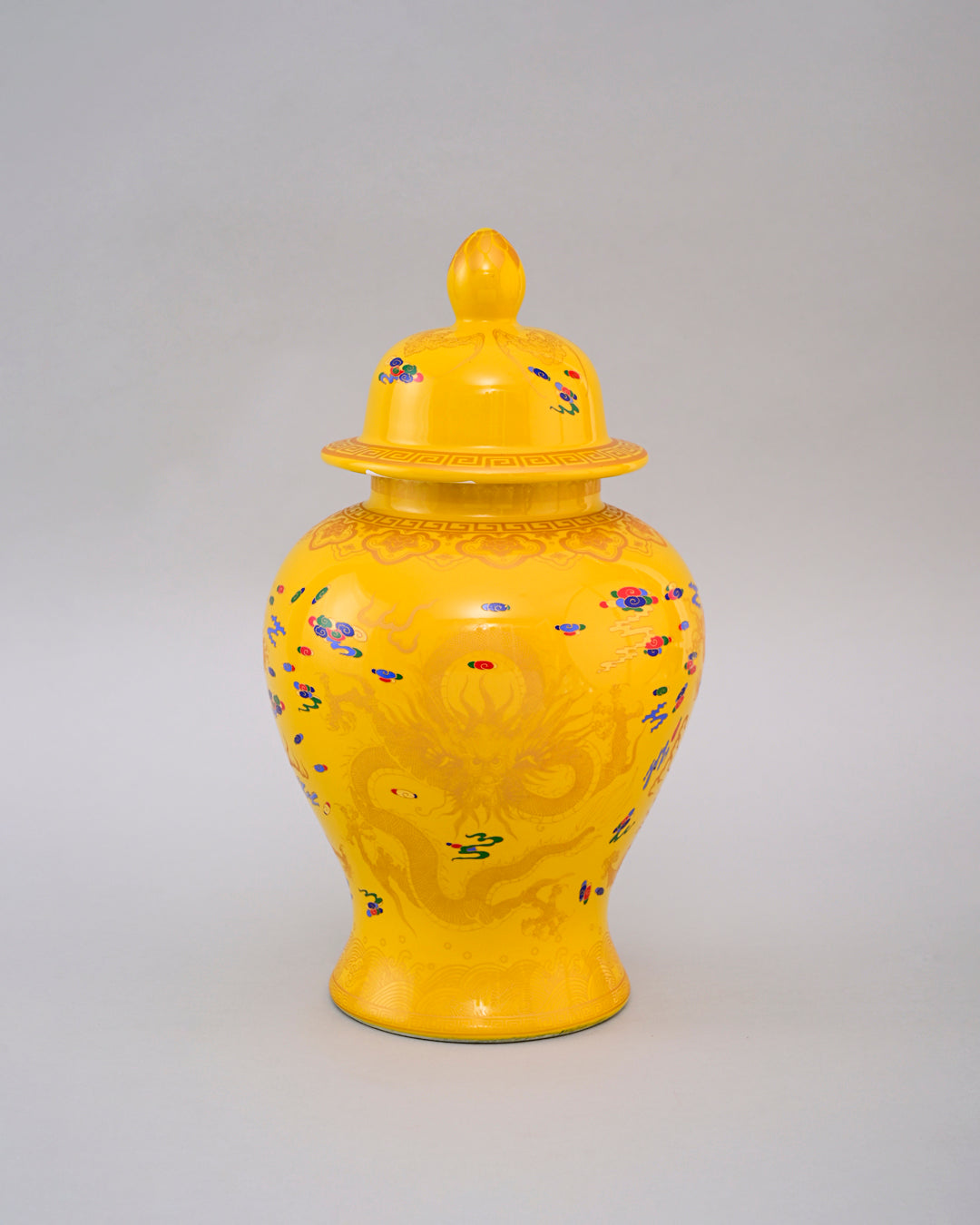 Golden Imperial Dragon Temple Jar - Yellow - 35 cm