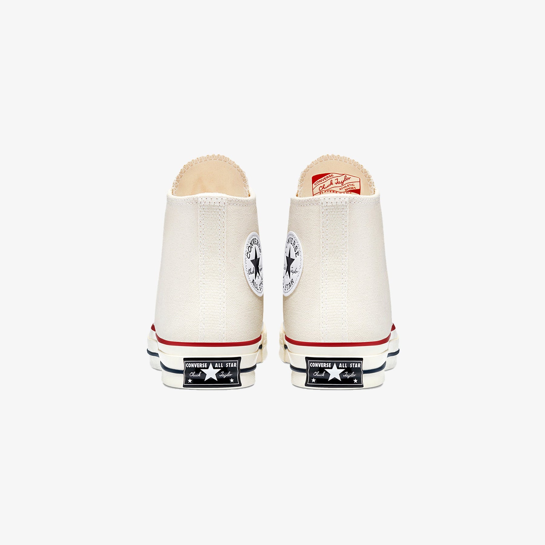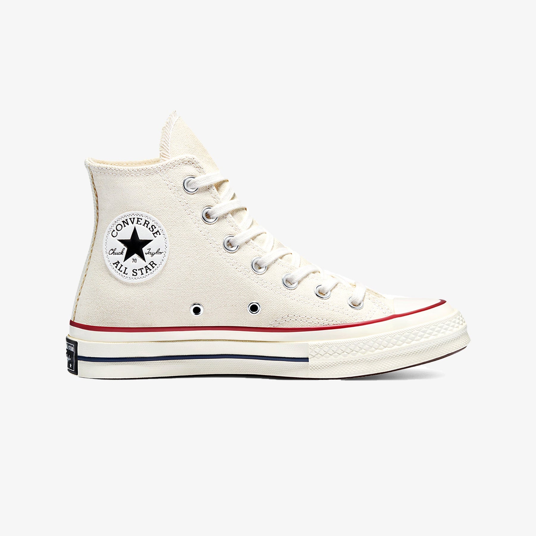 More cushioning, tougher canvas, same versatility. The Chuck 70 High Top is built off of the original 1970s design, with premium materials and an extraordinary attention to detail. We added an extra cushy insole for arch support and stability, and used wing tongue stitching on 12oz canvas for durability. No reason not to wear them all day, every day.