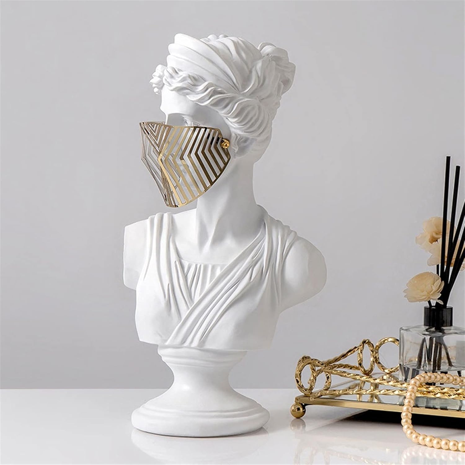 In a world of uncertainty, this sculpture reimagines the classical ideal. The elegant bust, adorned with a striking mask, embodies both strength and vulnerability. This bold and provocative piece challenges traditional notions of beauty and invites us to embrace the complexities of the human experience.
