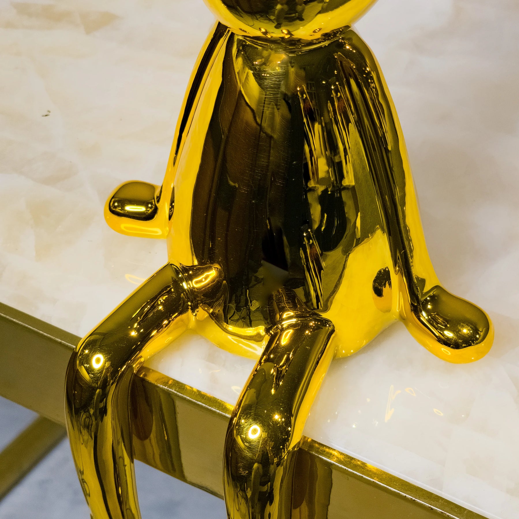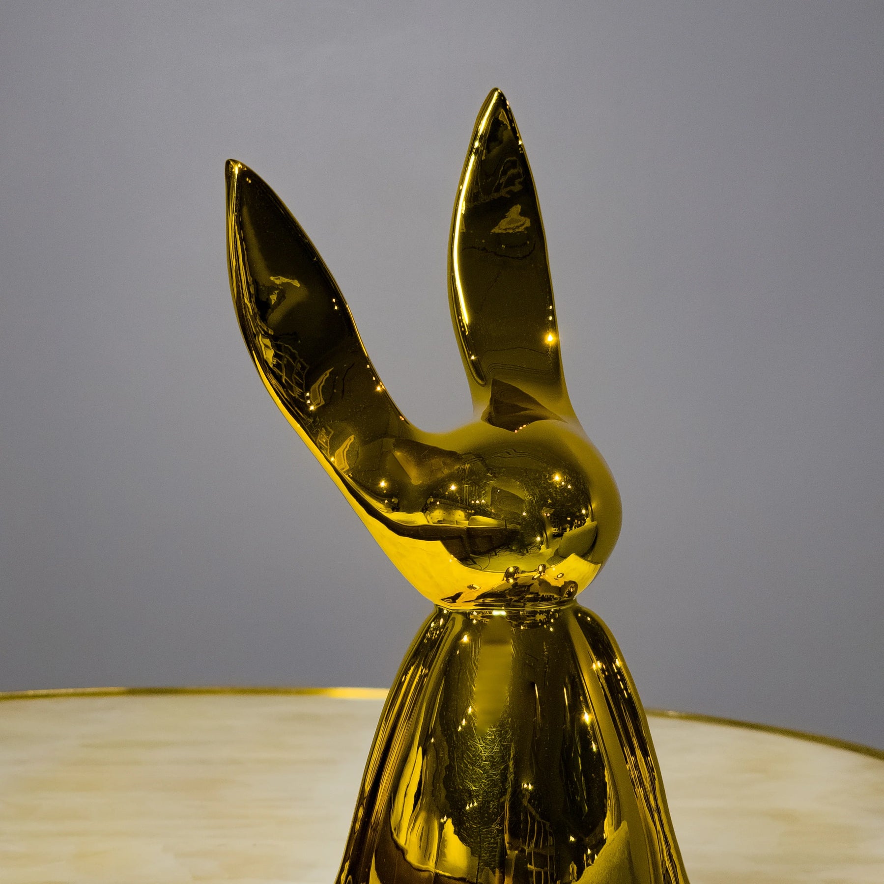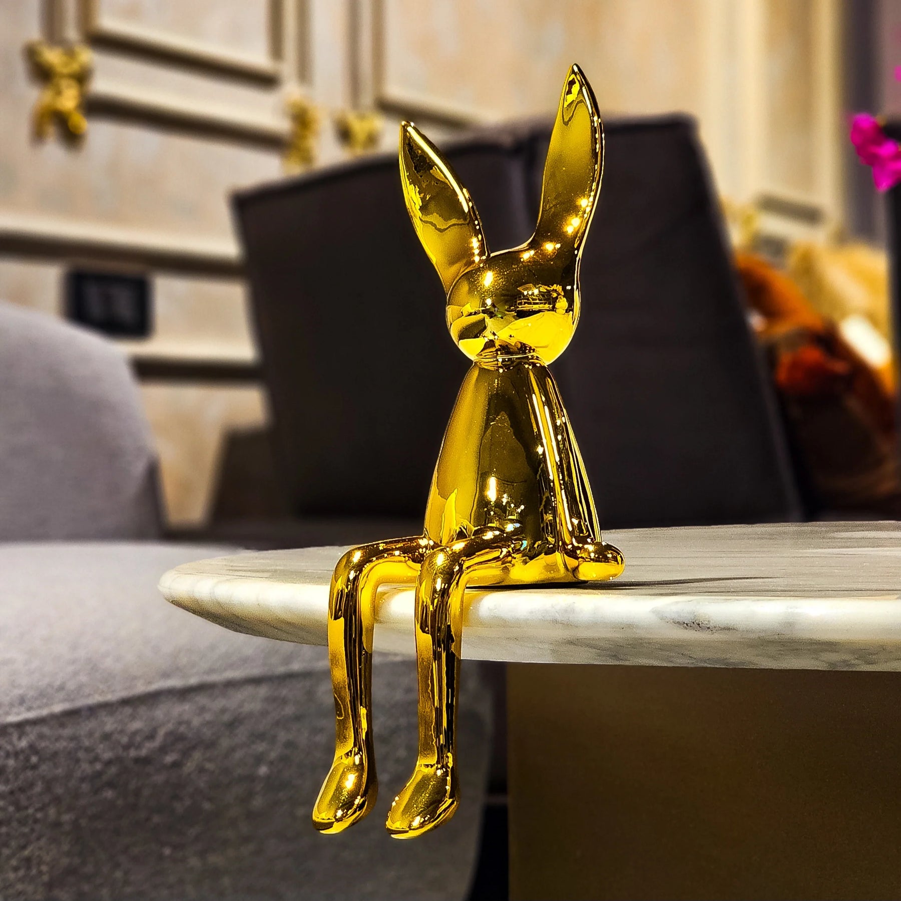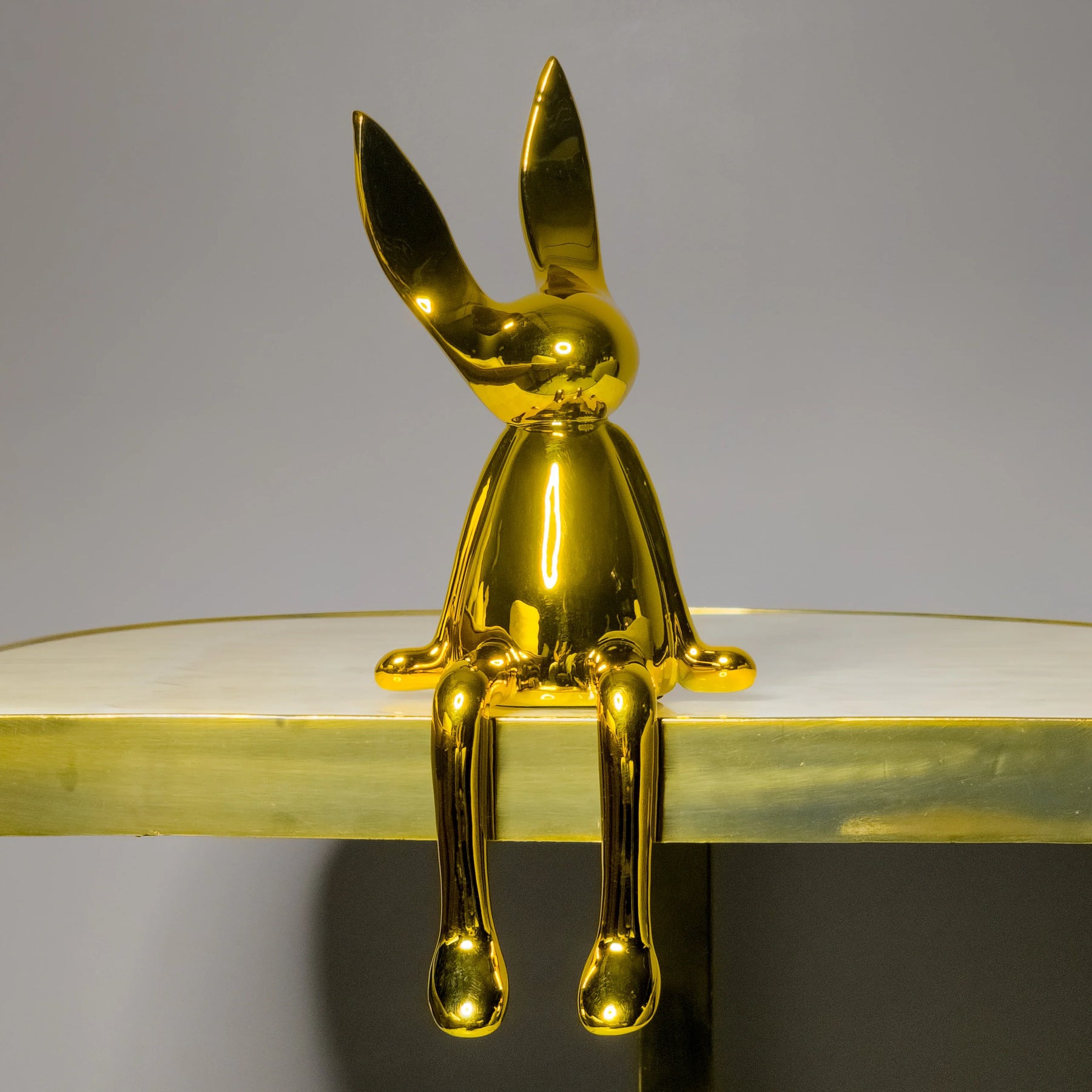 Bring a touch of luxury and playful charm to your interiors with this glossy golden bunny figure. Featuring a sleek, minimalist form with long ears and dangling legs, it’s perfect for perching on shelves, ledges, or console tables. The radiant metallic gold finish reflects light beautifully, adding a glamorous accent to both modern and eclectic décor styles.