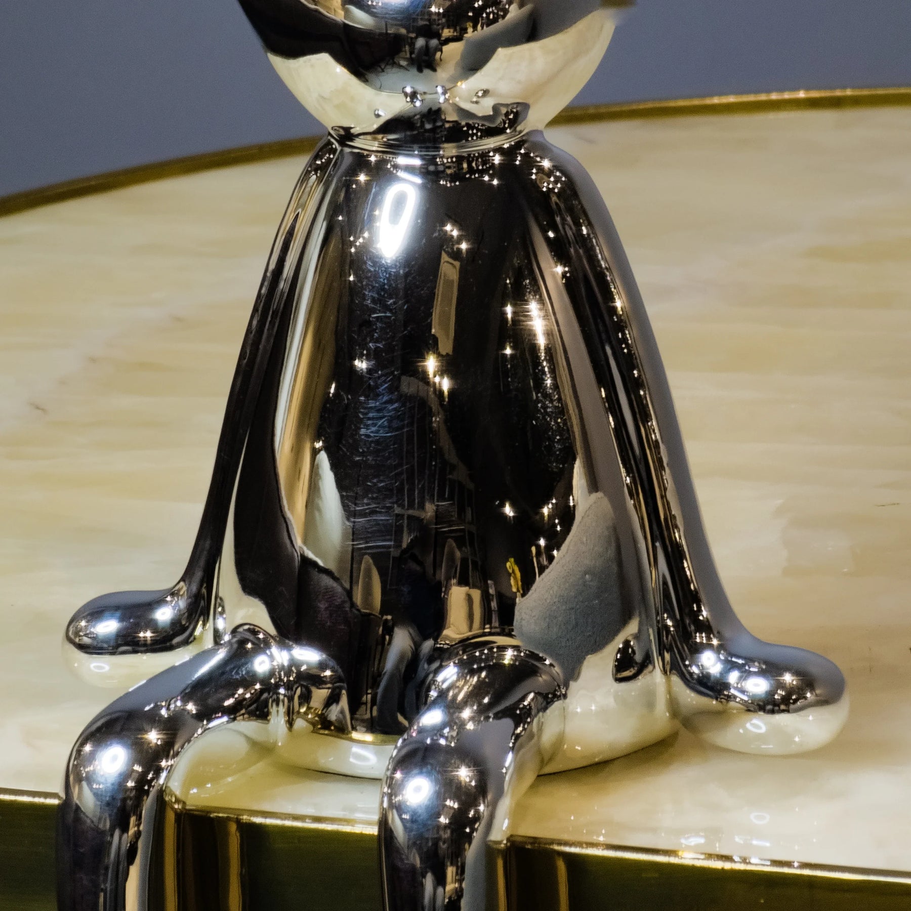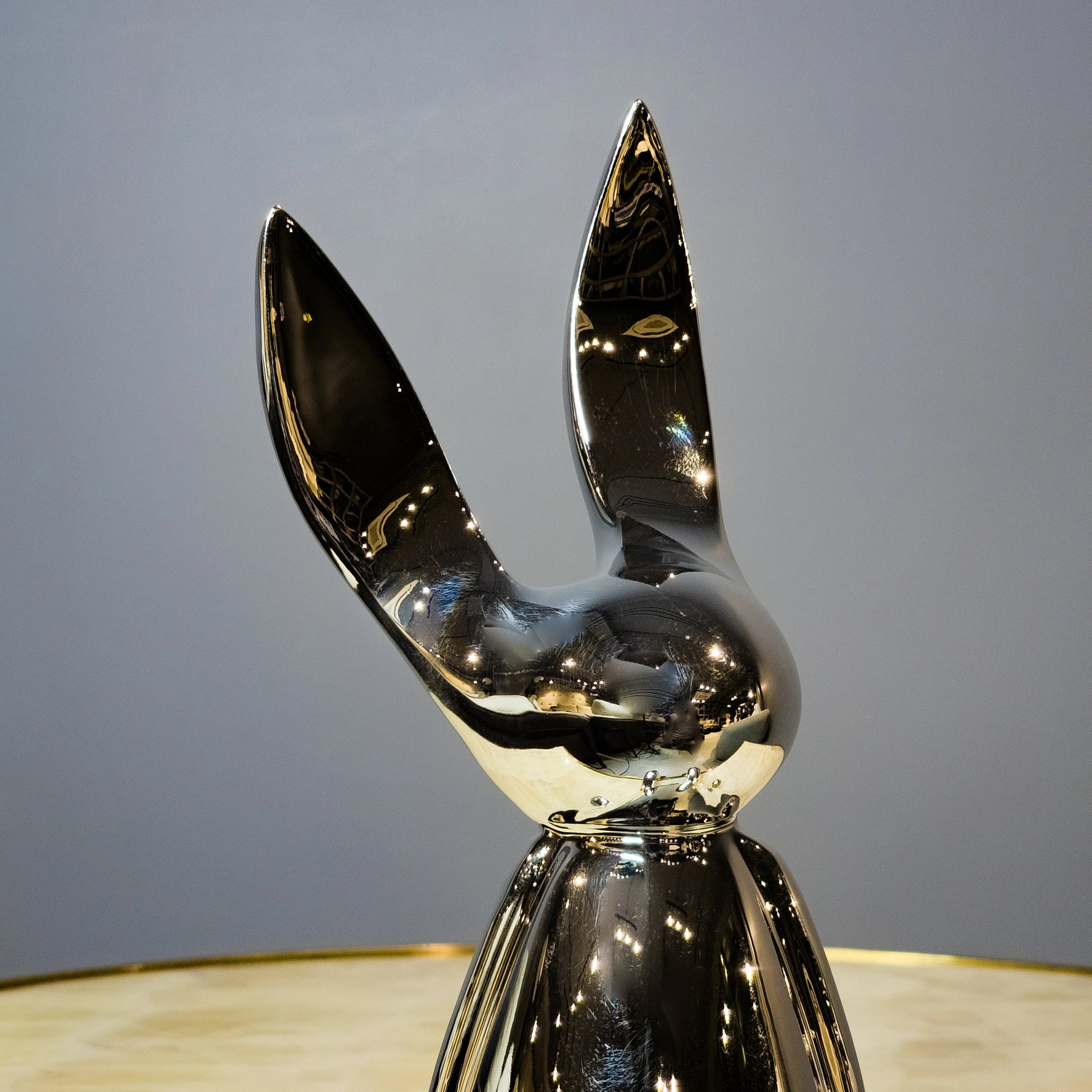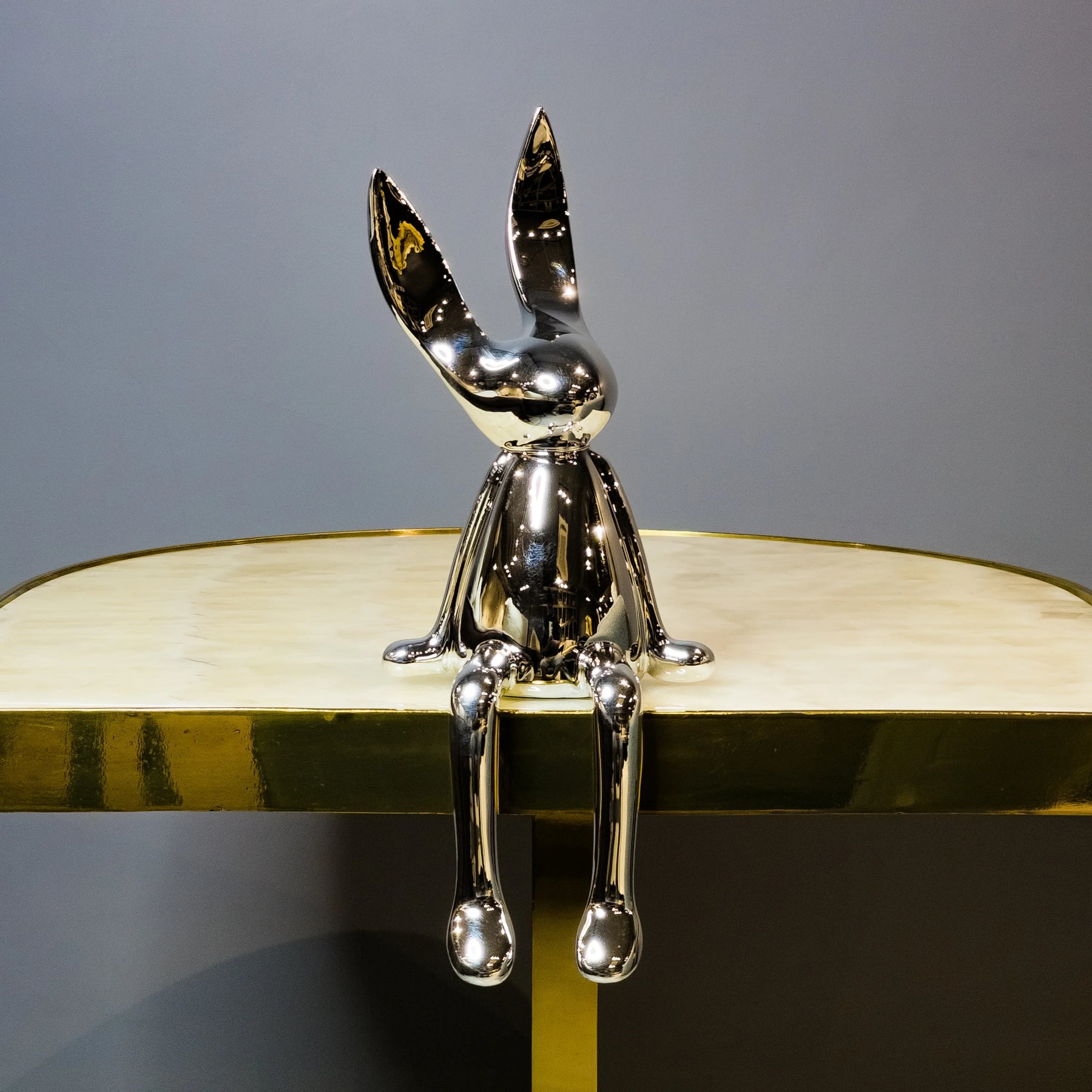 Bring a touch of playful elegance to your space with this sleek chrome-finished bunny figure. Featuring a whimsical seated pose with elongated ears and a smooth reflective surface, it effortlessly blends contemporary design with artistic charm. Perfect for display on shelves, consoles, or office desks, it adds both personality and modern sophistication to any setting.