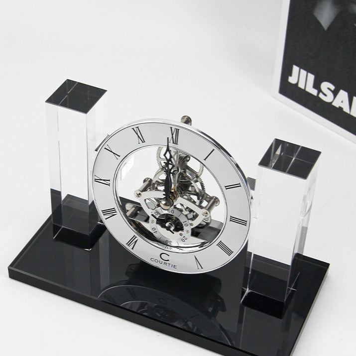 Ideal for desks, mantels, or shelves, the Crystal Elegance Clock enhances any space with its refined charm and utility. The fusion of crystal and precise clockwork creates a unique decor piece that captures attention while keeping you punctual.