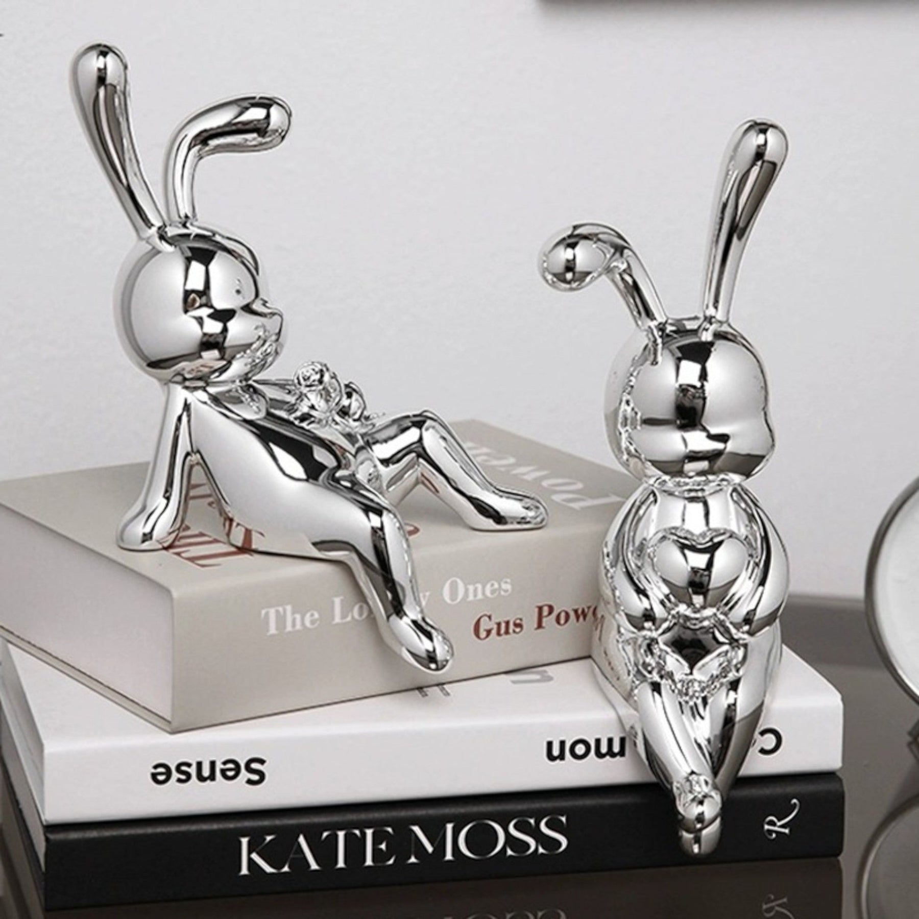 The playful yet elegant design makes this decor set ideal for both homes and offices. Whether displayed together or individually, these bunnies bring a sense of whimsy and class to any interior setting. Their compact size and lightweight build make them easy to place and rearrange as needed, making them a versatile choice for any decor enthusiast.