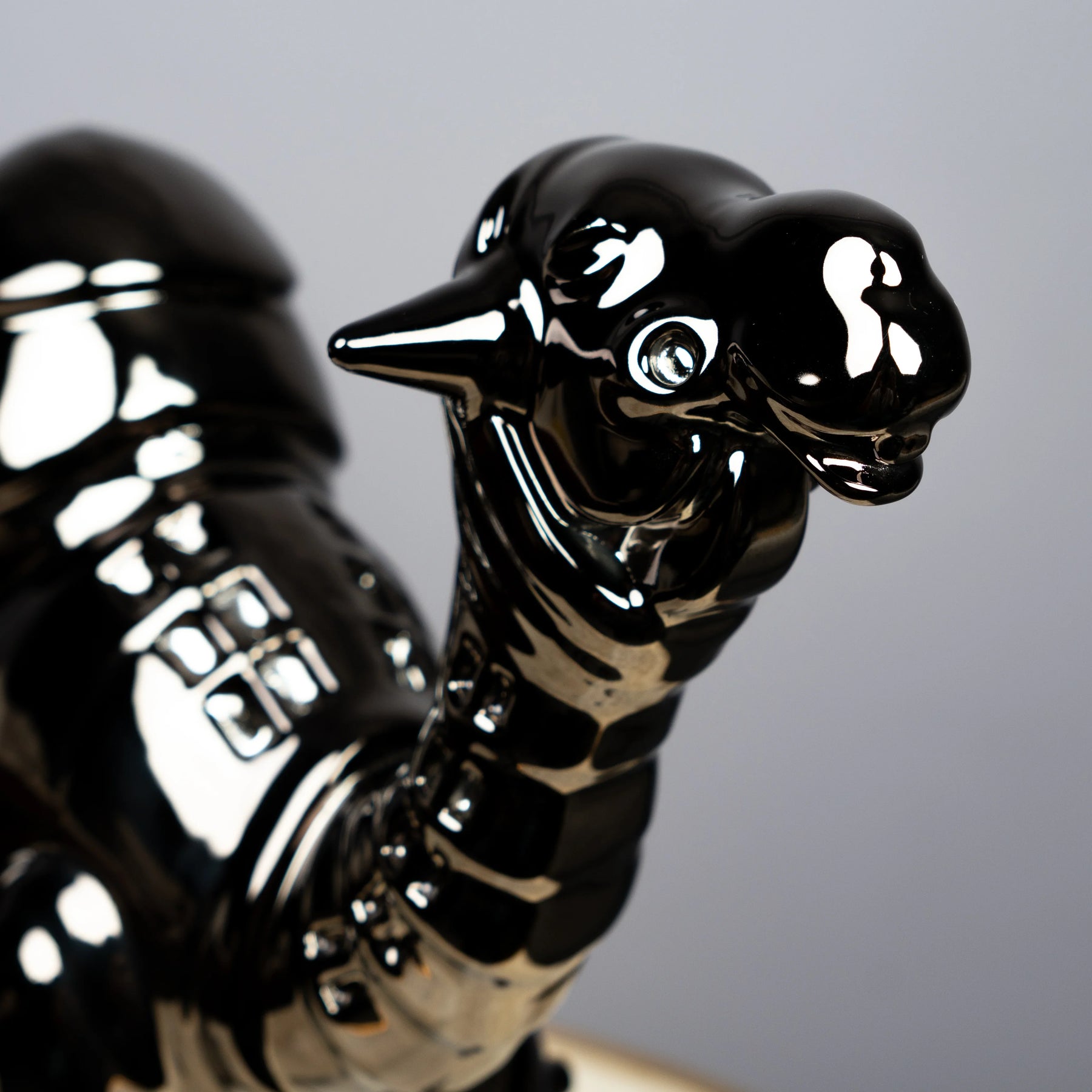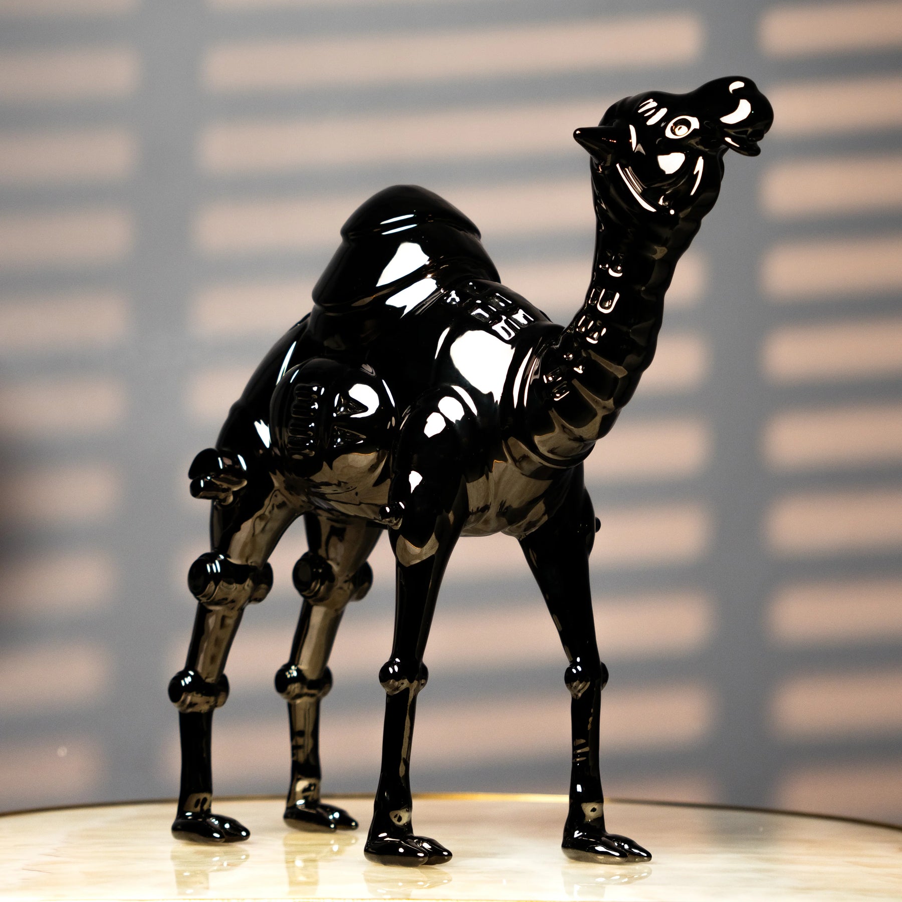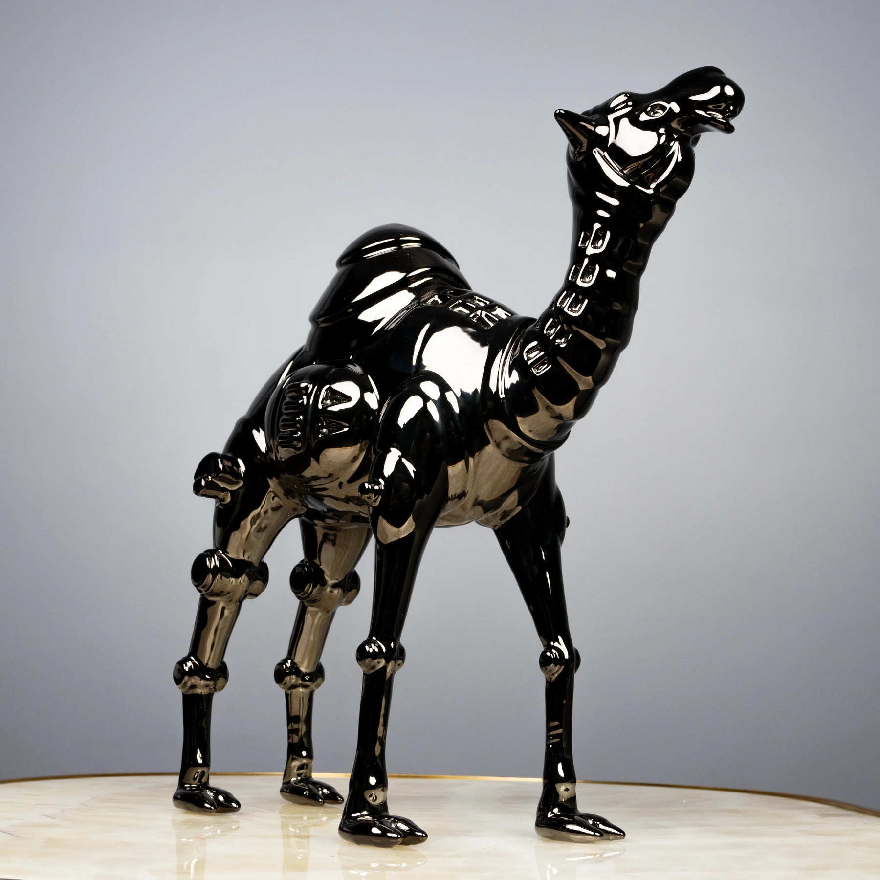 Bold, unique, and irresistibly eye-catching — the Futuristic Camel Decor piece brings a quirky blend of traditional charm and robotic fantasy. Finished in high-gloss black, this metallic-look sculpture reimagines the iconic desert animal in a tech-inspired, armor-like structure. Perfect for modern interiors that crave a conversation piece with attitude, it adds both elegance and edge to your tabletops, consoles, or workspaces.