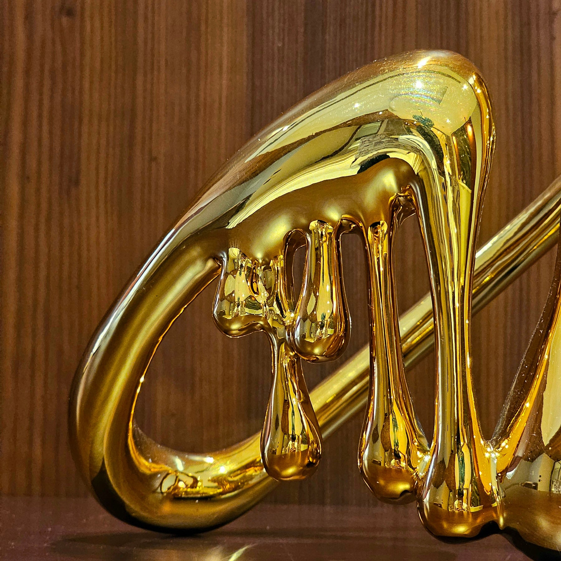 Redefine modern elegance with the Golden Fluidity Sculpture, a mesmerizing piece of contemporary art. Crafted from premium resin, this unique decor item features a flowing design with a sleek golden finish, symbolizing motion and creativity. Its avant-garde style makes it the perfect centerpiece for modern interiors, sparking conversations and admiration.