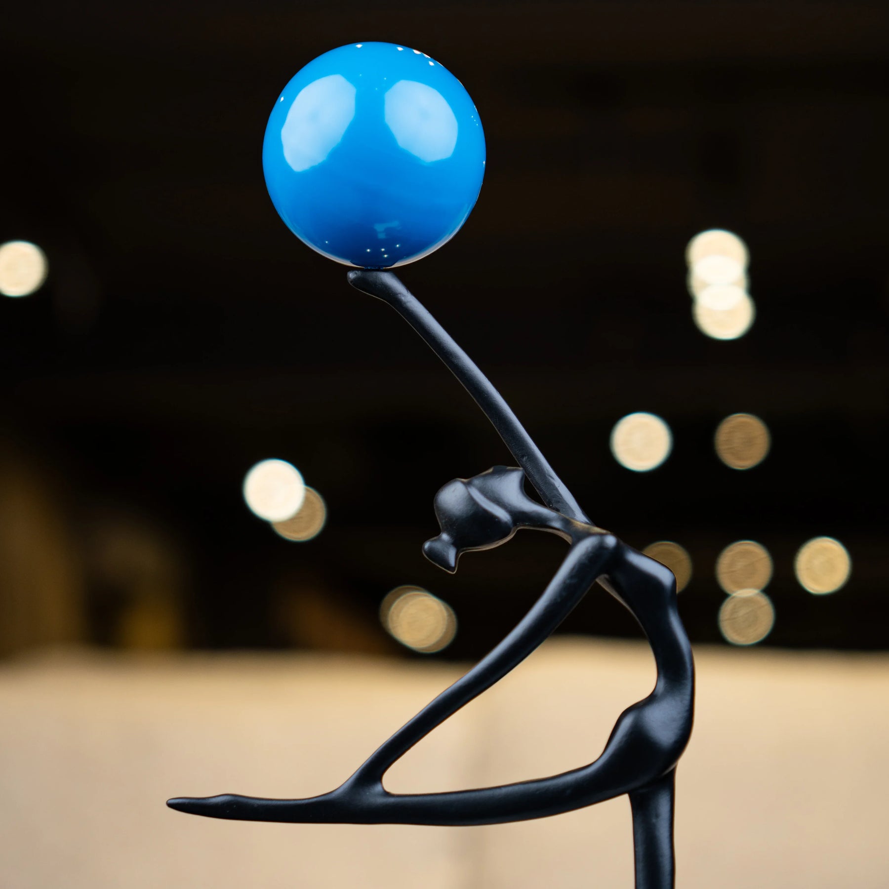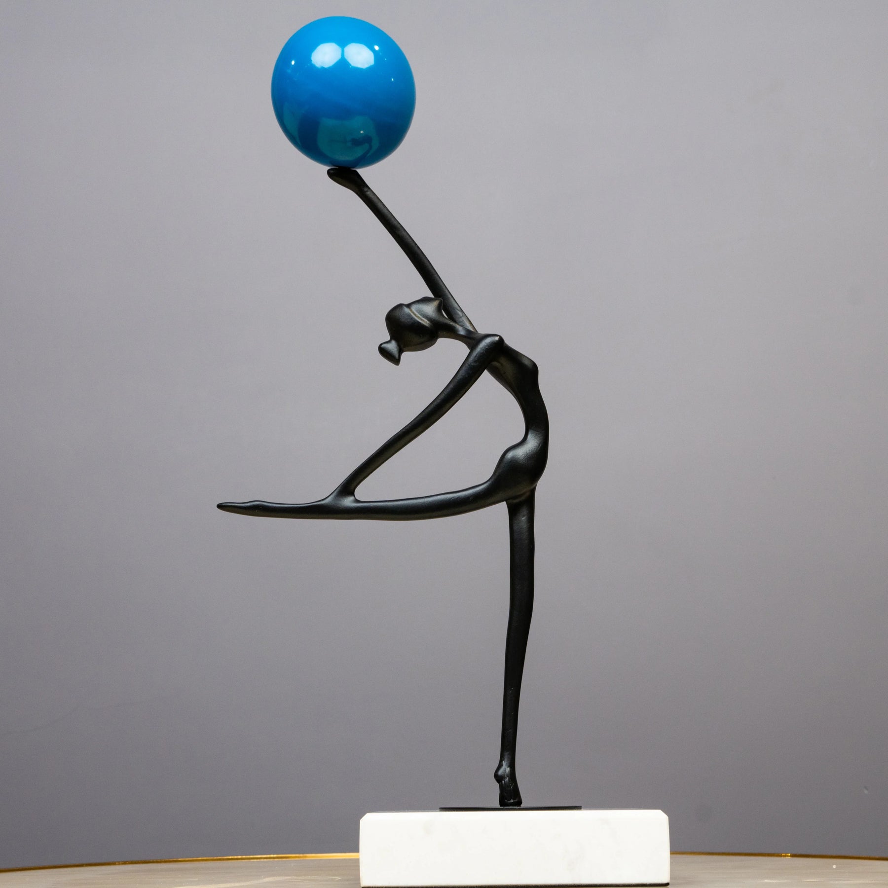 Celebrate elegance, strength, and artistic grace with the Graceful Motion Ballerina Sculpture. This stunning decor piece captures a ballerina in mid-motion, arching gracefully while holding a vibrant blue sphere, symbolizing balance, passion, and poise. With its fluid silhouette and refined detailing, this sculpture becomes an instant focal point in any space.