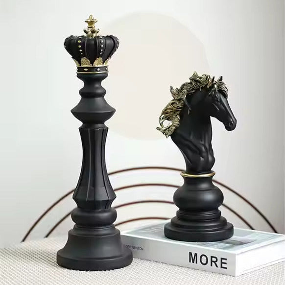 Standing 41 cm tall, its sleek black finish and smooth, sculptural form make it a perfect accent piece for office desks, console tables, bookshelves, or high-end decor settings. Whether you're a chess enthusiast or an admirer of elegant design, this commanding sculpture embodies intelligence, strategy, and sophistication.