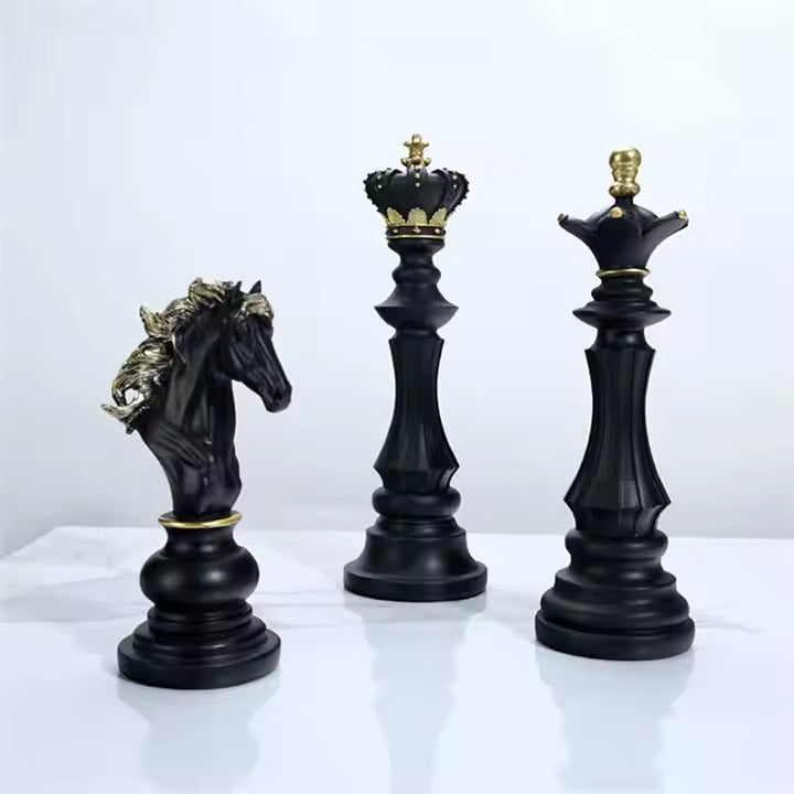 Grandmaster's Elegance Chess Piece Sculpture - Set of 3