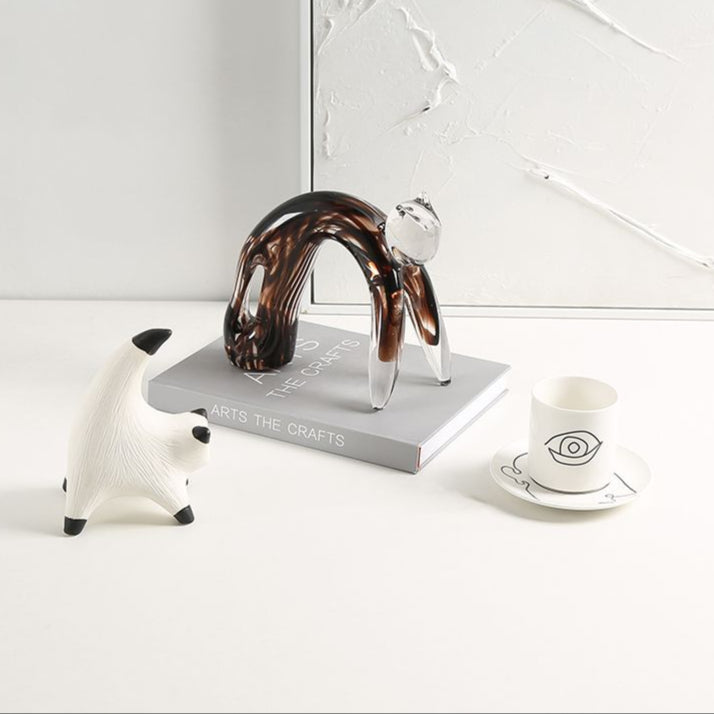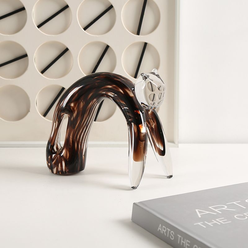 Behold the enchanting glass cat figurine, a true masterpiece that captures the essence of feline grace and charm. Crafted with meticulous attention to detail, this stunning piece features a sleek, glossy body that glimmers under the light, showcasing the artistry of skilled artisans. The striking black and white striped tail adds a playful yet sophisticated touch, creating a delightful contrast that draws the eye and sparks conversation. Perfectly sized to adorn a mantelpiece or a display cabinet, this figurine not only serves as a captivating decorative element but also embodies a sense of whimsy and elegance that will enhance any interior space. A timeless addition to your collection, this glass cat figurine is sure to be cherished for years to come, making it an ideal gift for cat lovers and art enthusiasts alike