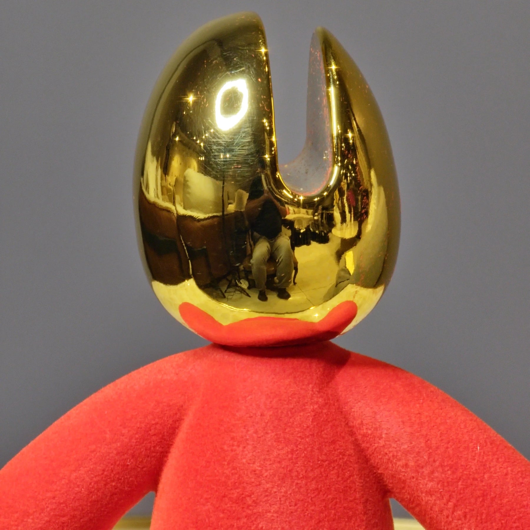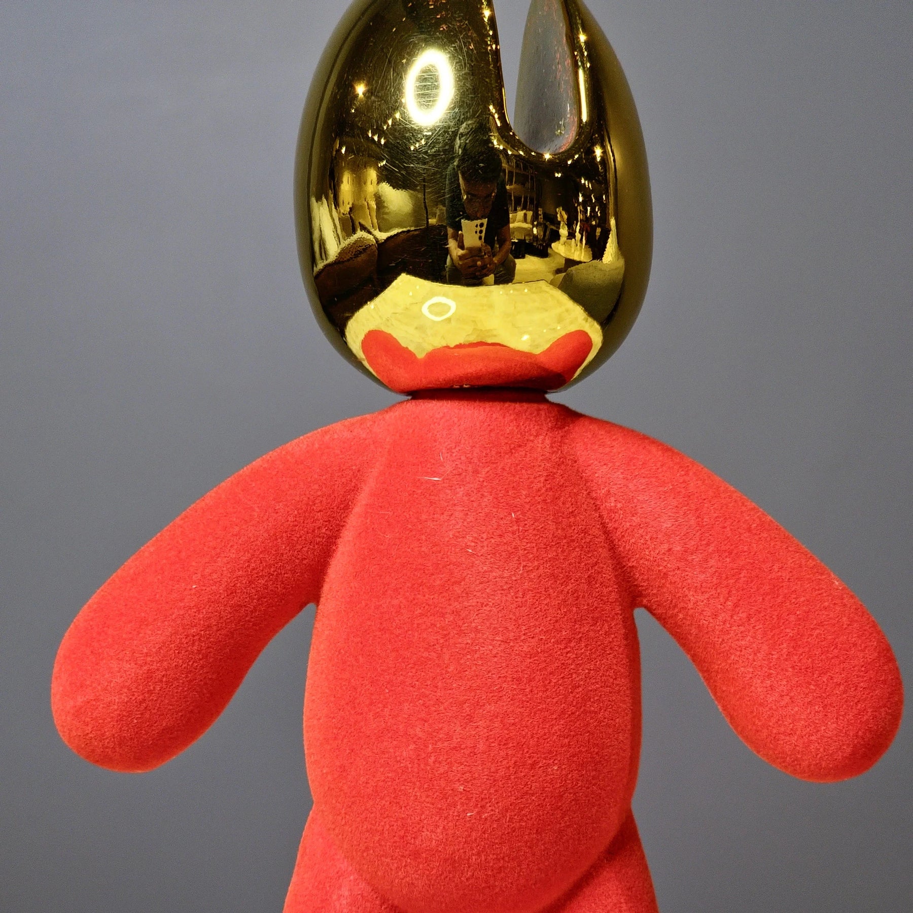 This bold decor piece combines a soft red velvet-textured body with a gleaming golden head, creating a perfect balance of elegance and modern art. Its eye-catching design makes it a statement accent for living rooms, offices, or gallery-inspired interiors. A must-have for those who love unique and contemporary decor.