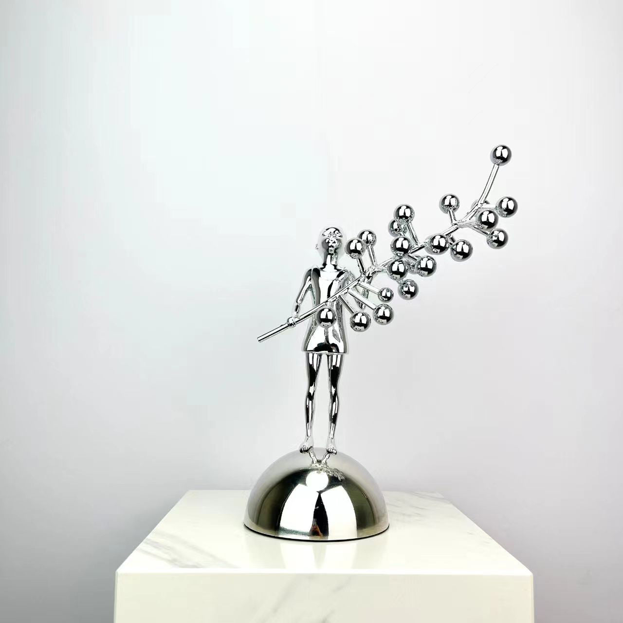Celebrate the power and grace of individuality with the Strength in Elegance. This stunning decor piece, made from plated resin and zinc, portrays a proud and confident girl holding an abstract structure, symbolizing strength, resilience, and determination. Its brilliant metallic finish adds a luxurious touch, making it the perfect statement piece for any home or office.