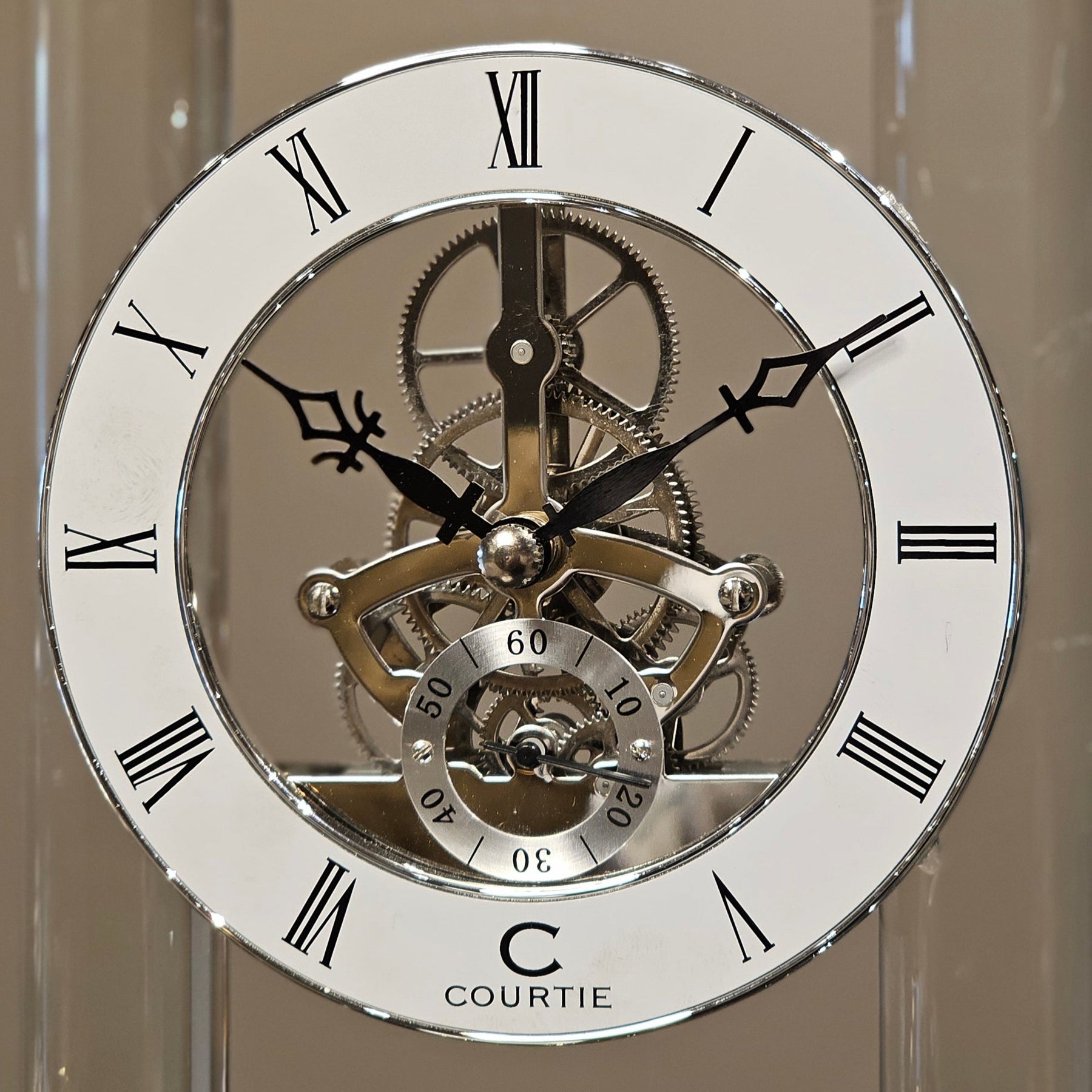 🕰️ Elegant Composition: Glass pillars and base offer clarity and grace.