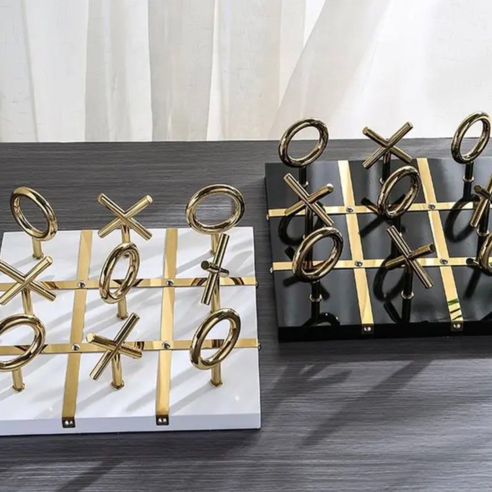 Reimagine a classic game with the Timeless Tic Tac Toe set—a perfect blend of playfulness and sophistication. Featuring elegant gold-plated X’s and O’s on sleek black and white boards, this decor piece turns a nostalgic pastime into a modern statement. Crafted from premium plated resin, it’s as durable as it is eye-catching.