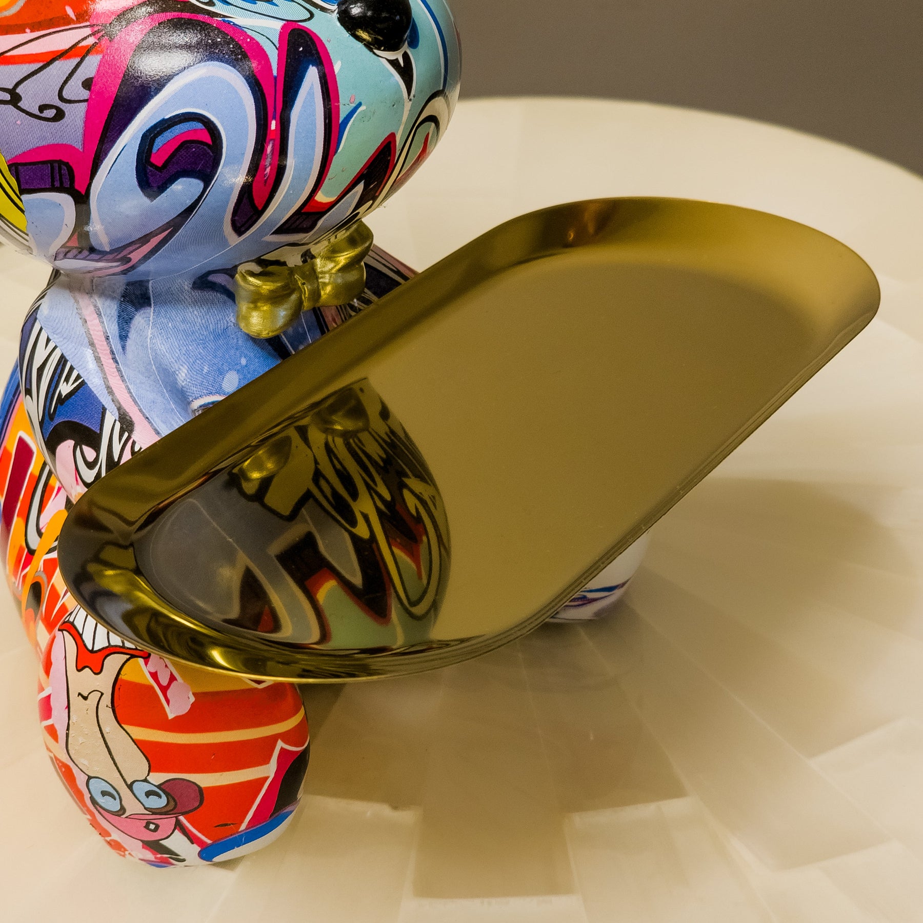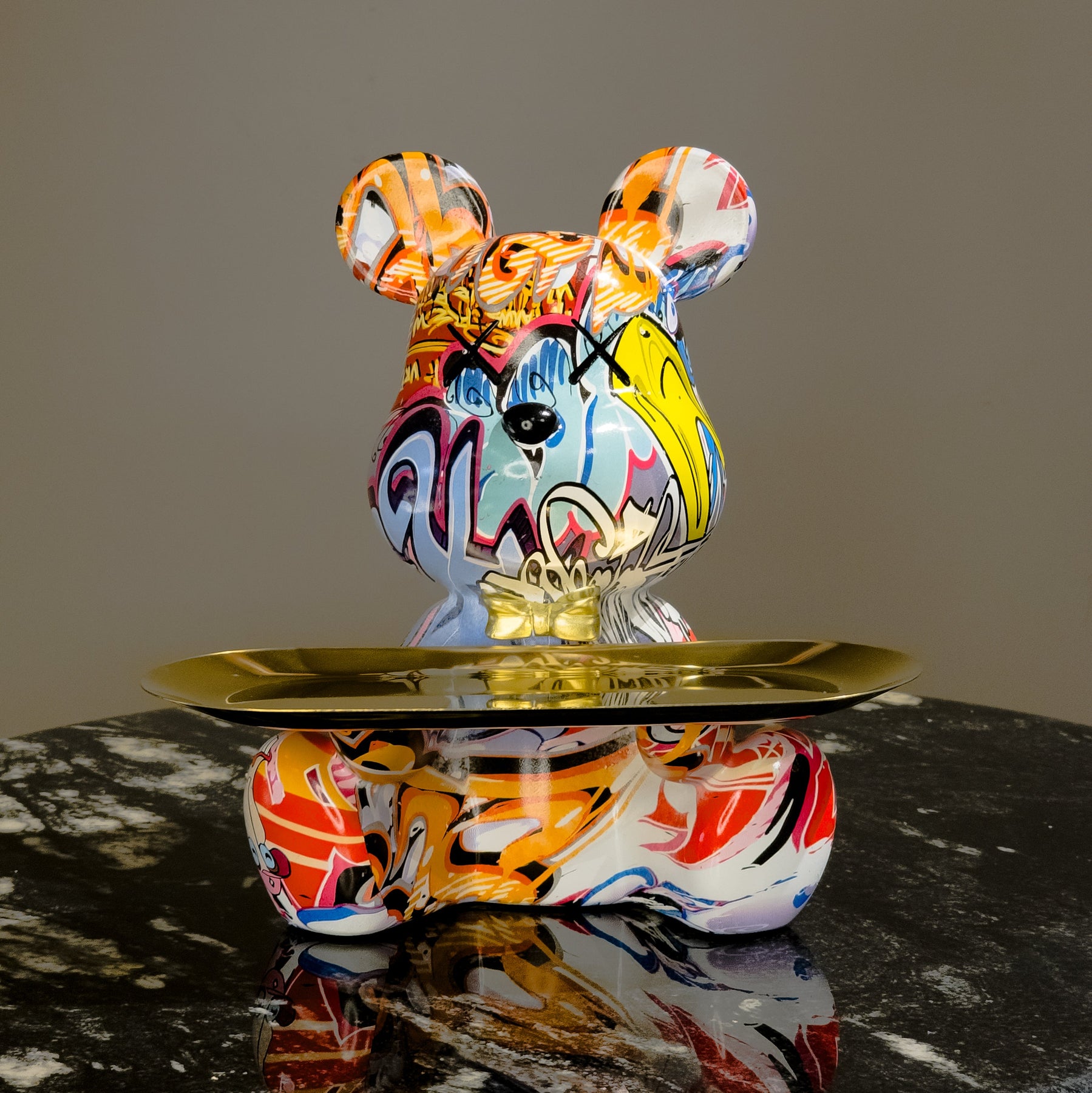 Perfect for entry consoles, dressers, or office desks, this decor piece doesn’t just organize — it adds bold personality to your space. The contrast between the bear’s colorful, artistic finish and the polished metallic tray makes it a standout addition to any modern or eclectic setting.