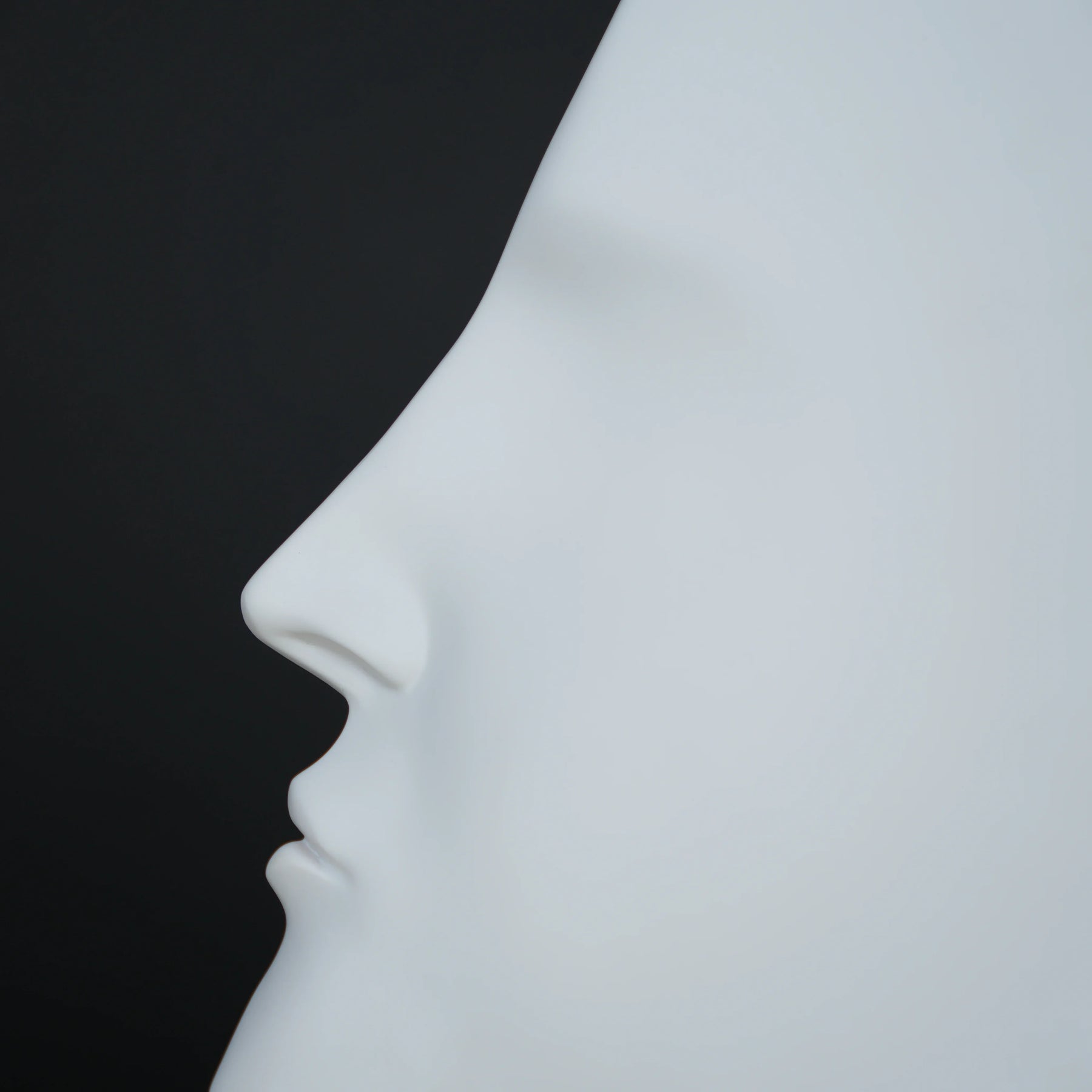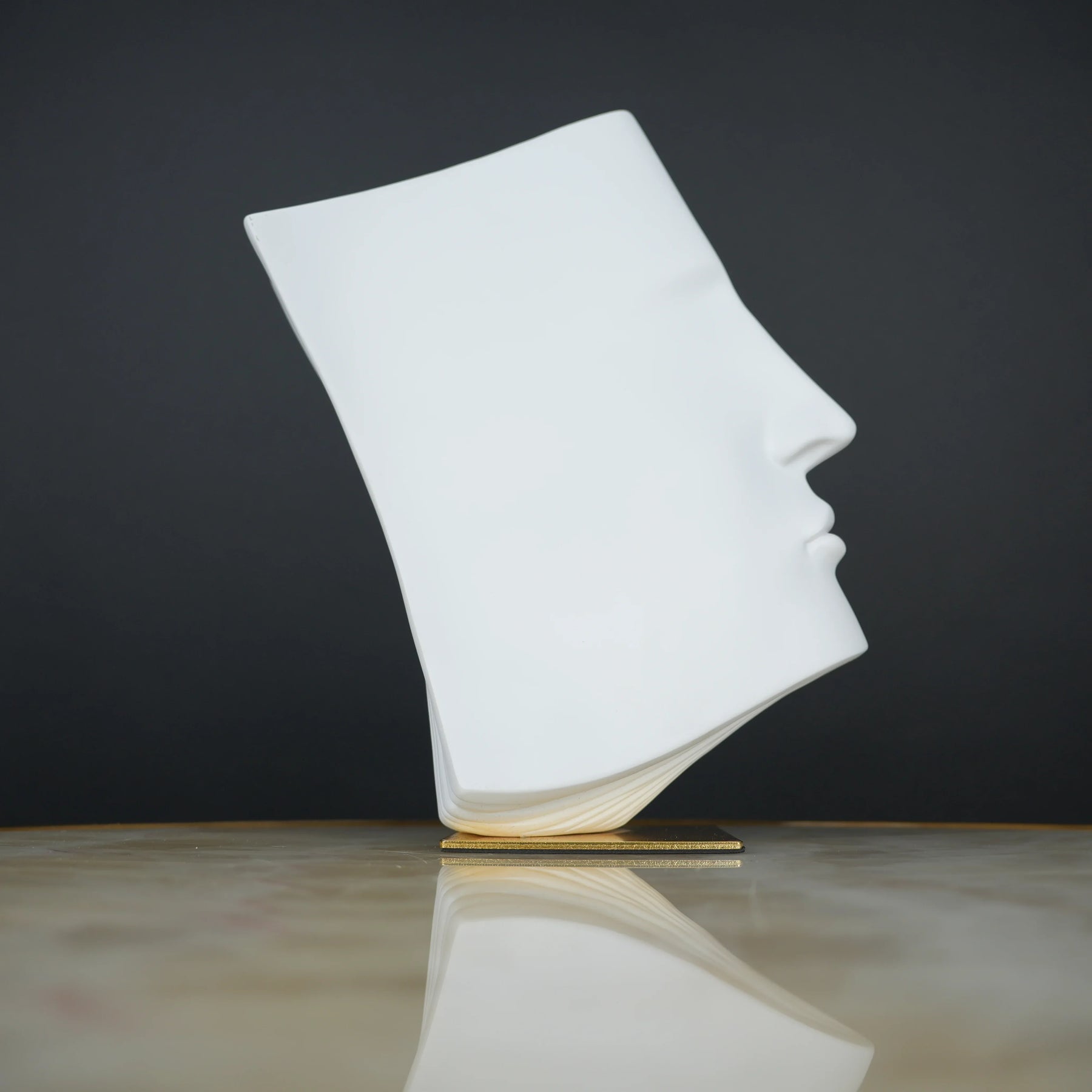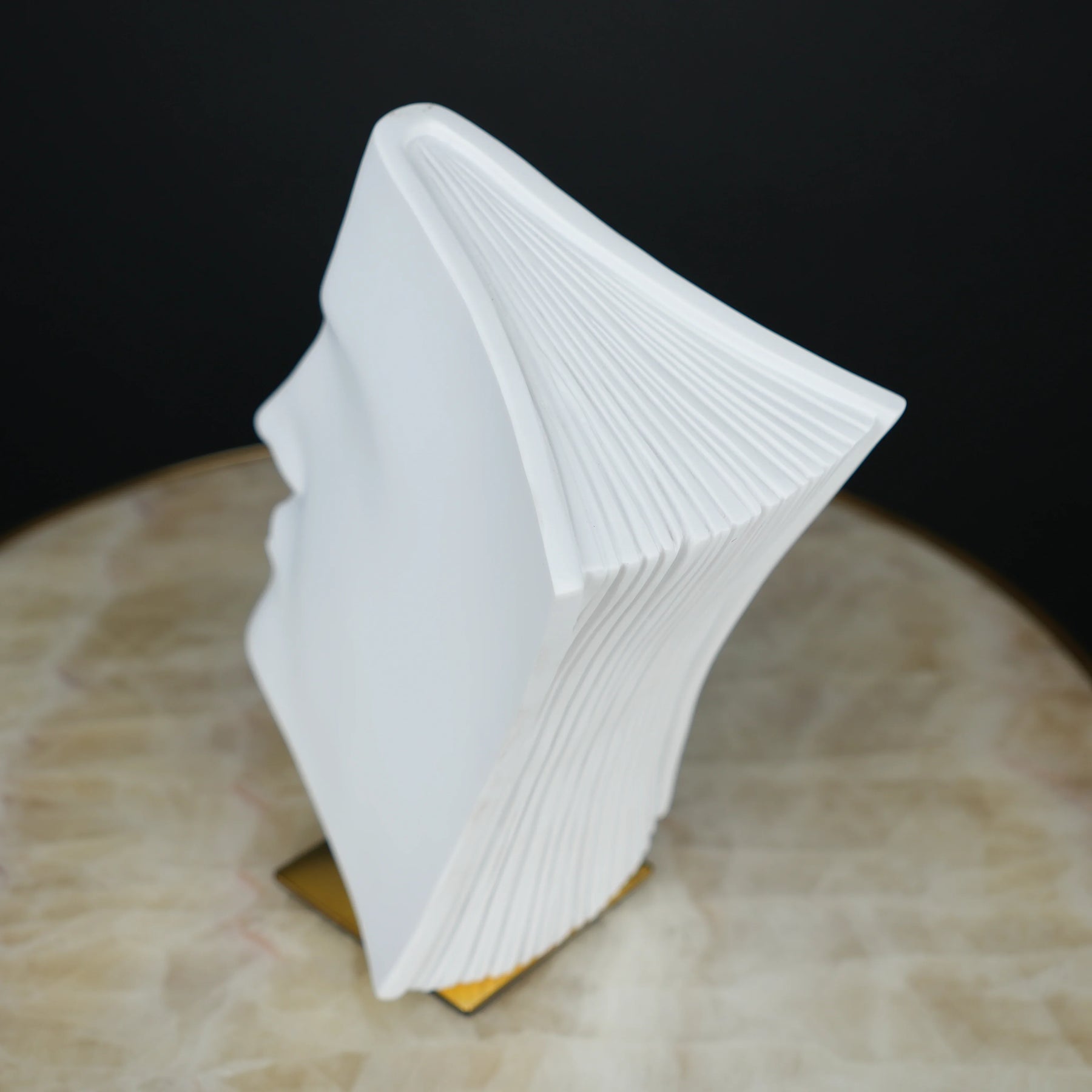 An artistic decor piece blending the form of a book with the elegance of a human profile. Crafted in a refined white finish with intricate detailing, it symbolizes knowledge, creativity, and modern artistry. A unique statement accent for bookshelves, coffee tables, or office desks.