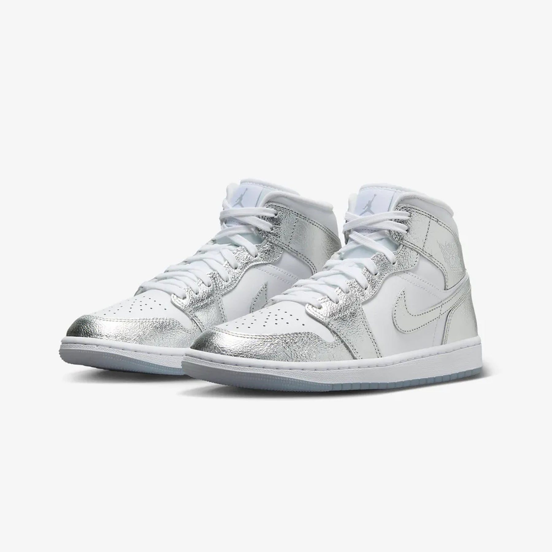 Jordan | AIR JORDAN 1 MID SE  { WHITE/METALLIC SILVER-WOLF GREY