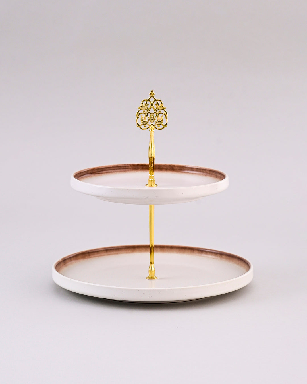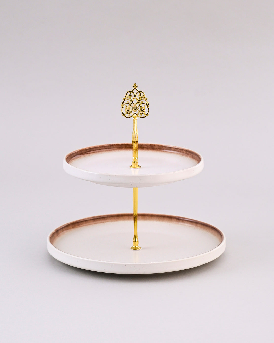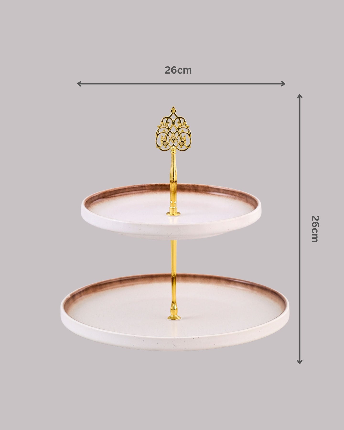 Use these dainty cake stands to serve your favourite desserts and hors-d'oeuvres. Our 2-tier cake stand adds a touch of elegance to any occasion, from an elegant dinner to a casual gathering. Perfect for desserts, pastries, and finger foods. This classic accessory gives your tabletop the ideal presentation at your next party.