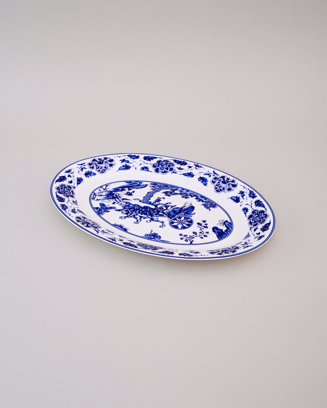 This elegant Blue Willow bone china Platter is adorned with timeless blue-and-white floral and scenic patterns, bringing a touch of classic charm to your dining table. Crafted with fine ceramic, it is perfect for serving appetizers, snacks, or main dishes during family gatherings and festive occasions. Its intricate oriental-inspired design makes it not only a functional serveware piece but also a decorative centerpiece that adds sophistication to any setting. Durable, easy to clean, and stylish, this platter is a must-have for traditional as well as modern homes.