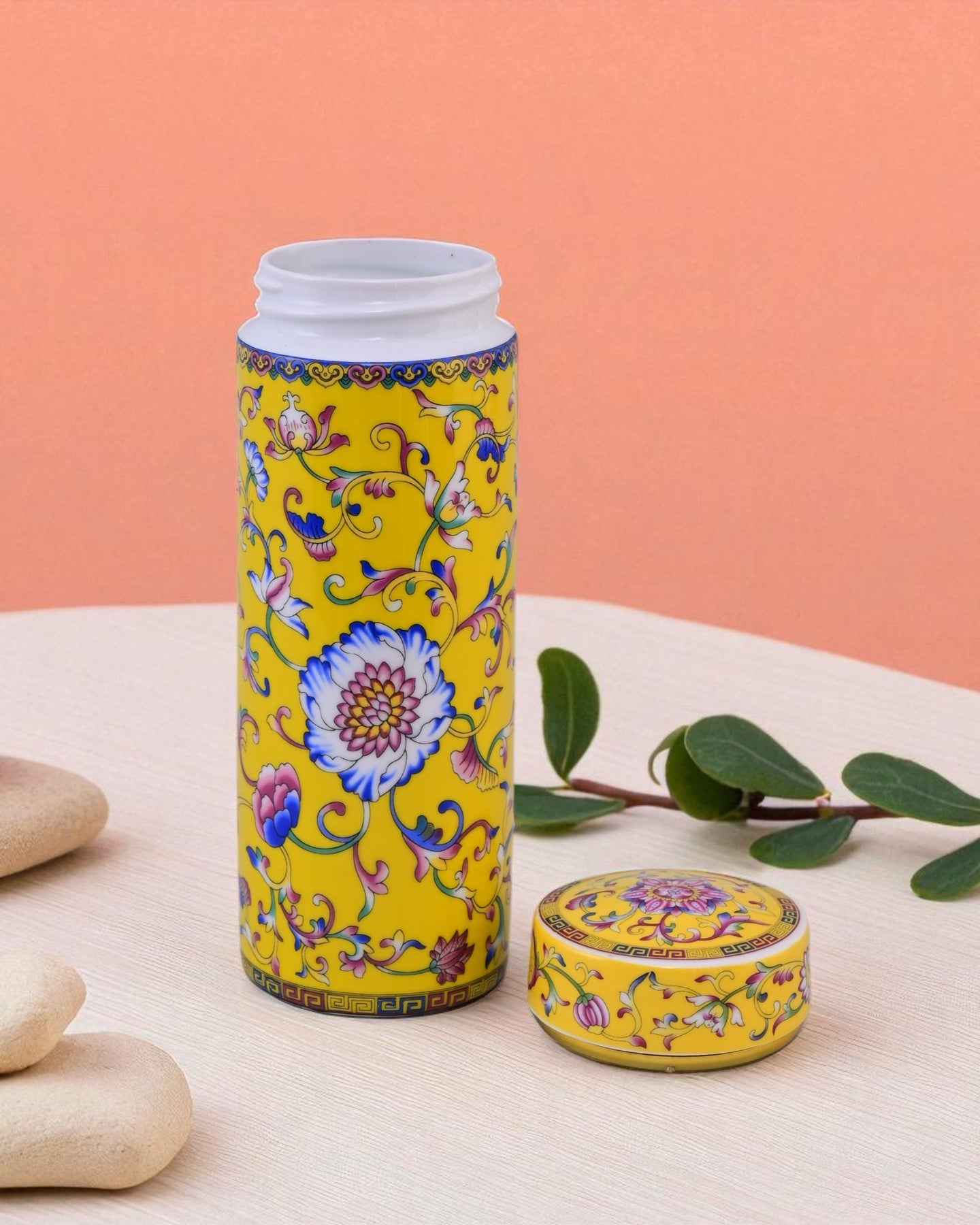 Our vibrant thermos flask with a pattern of inter-twisted branches and chrysanthemum signifies auspiciousness - and is the traditional pattern of the Han dynasty.