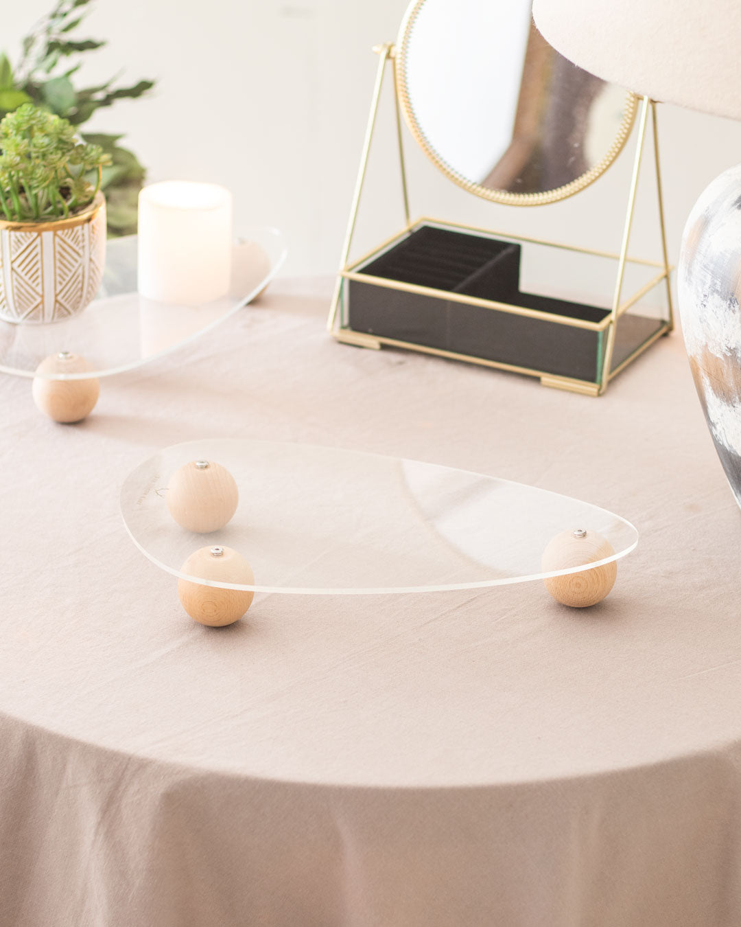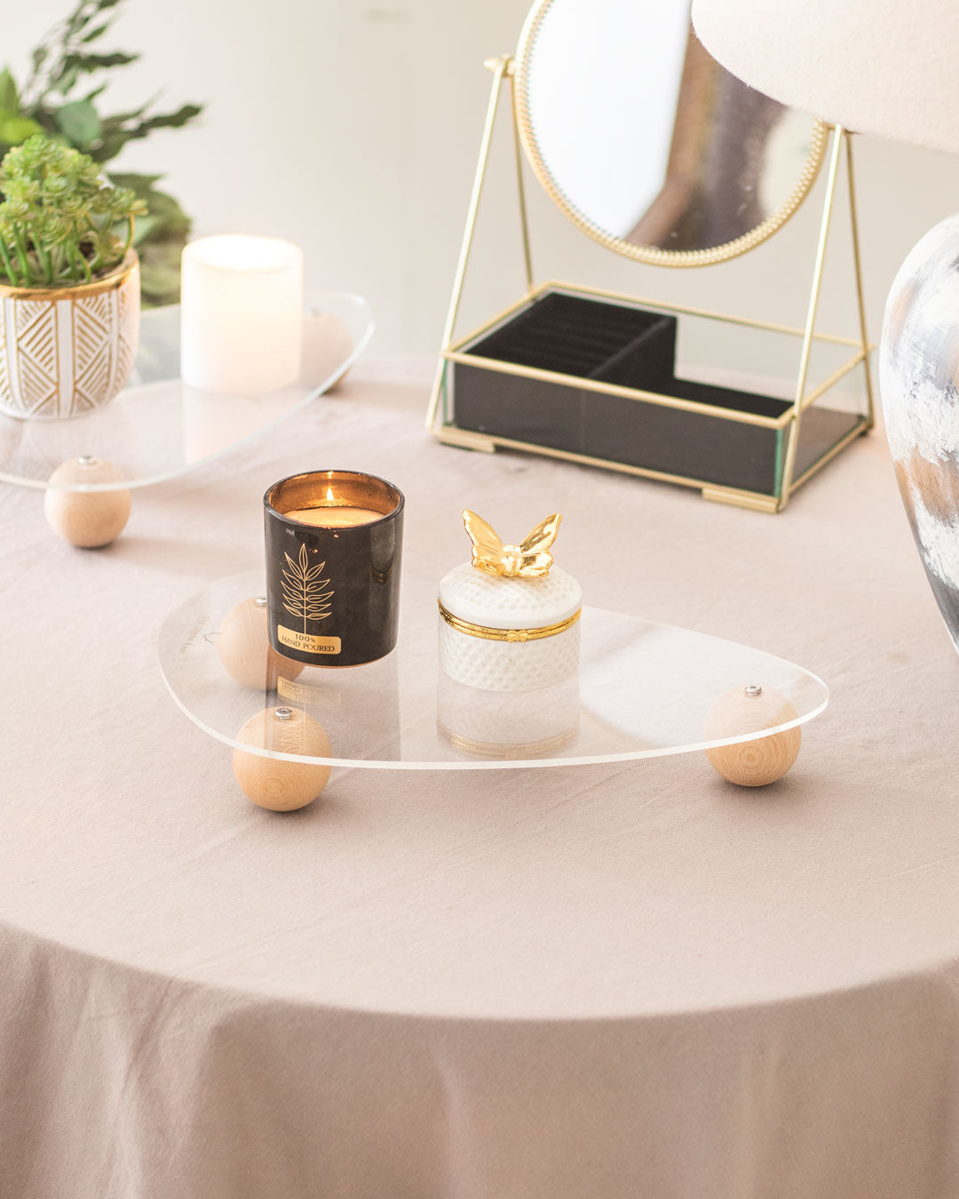 The overall design follows the classic fully transparent rectangular shape and the simple and stylish golden handle design, which is perfectly integrated with your home, making your home look more tidy and attractive, and it will also attract friends and family love. Perfect for makeup table tray, nightstand tray, coffee, and tea snack serving tray, even use for bathroom decoration tray. Keep your home organized. Leak-proof Design With fully sealed corners and an external curved handle design, you can easily and safely move the tray from the kitchen to the living room.