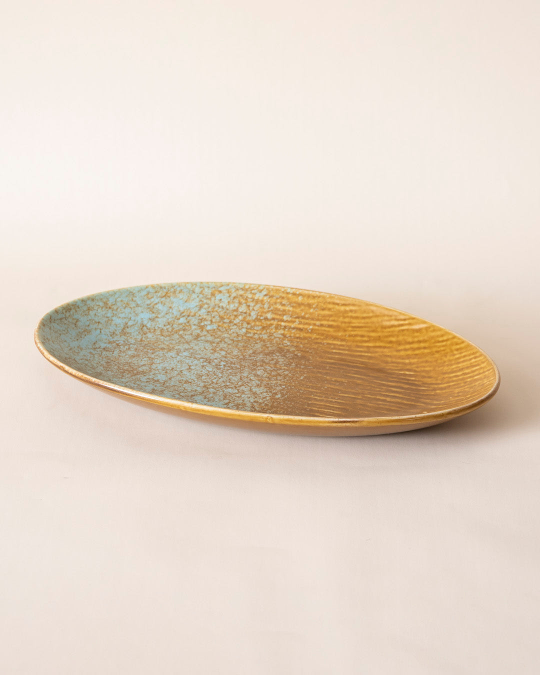 This Desert Dune Ceramic Platter is expertly crafted with a unique design that adds a touch of elegance to any table setting. Made with high-quality ceramic, this platter is durable and perfect for everyday use. Its footed design allows for easy handling and adds a stylish touch to your home decor.