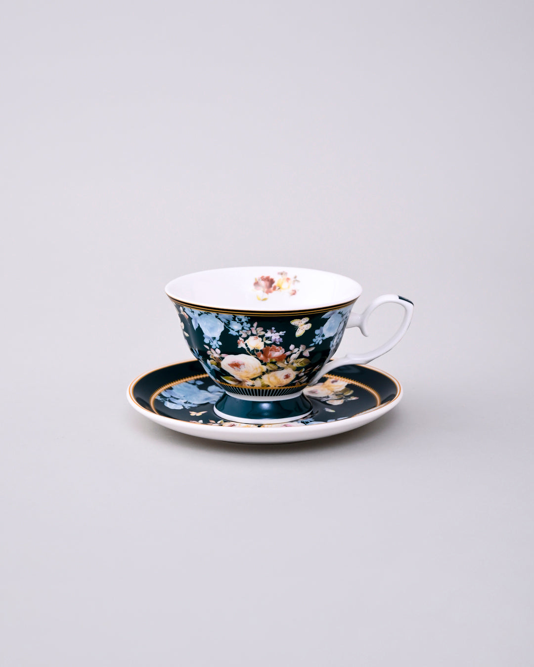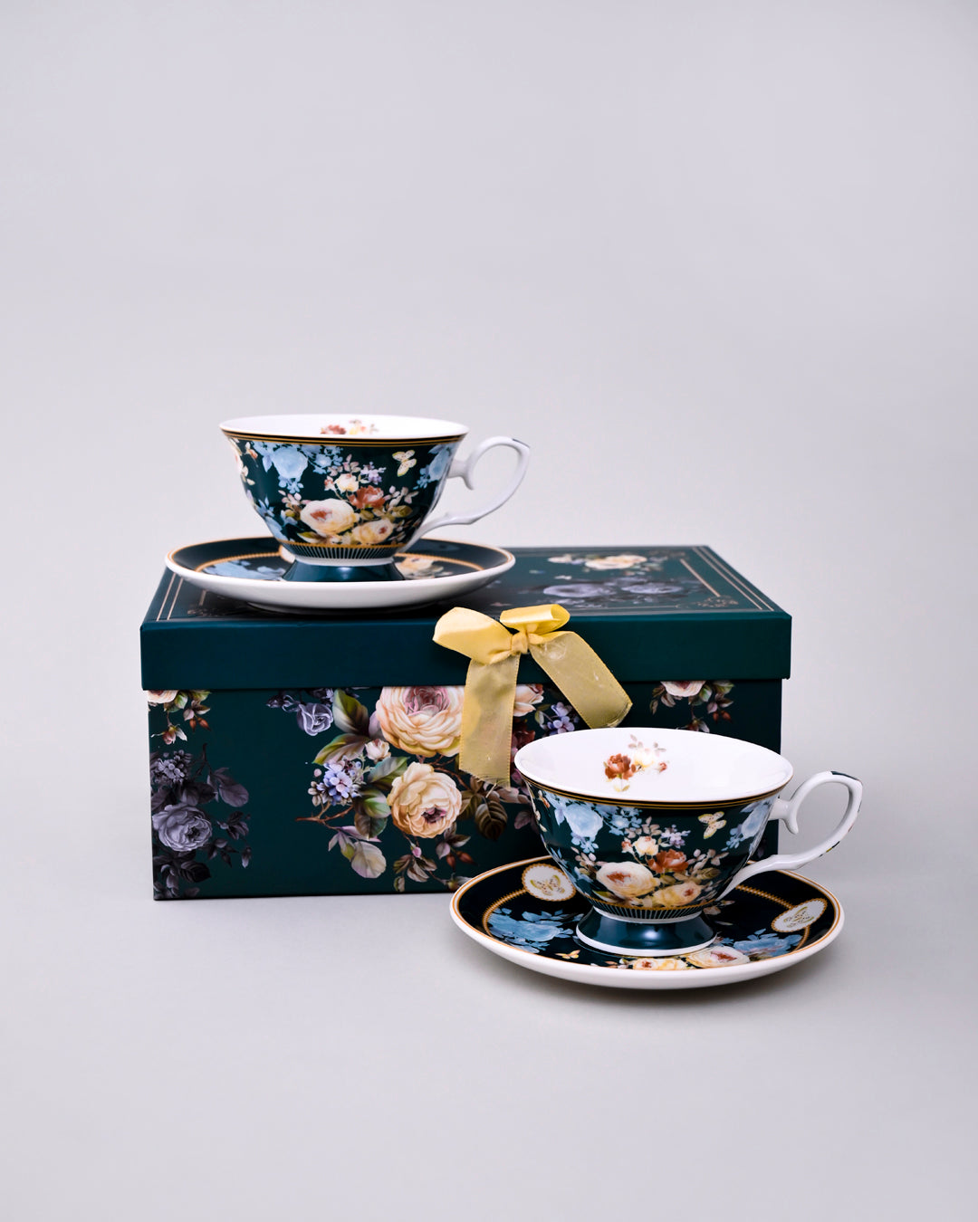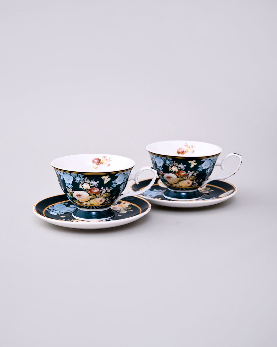 Emerald Bloom Tea Cup & Saucer - Set Of 2