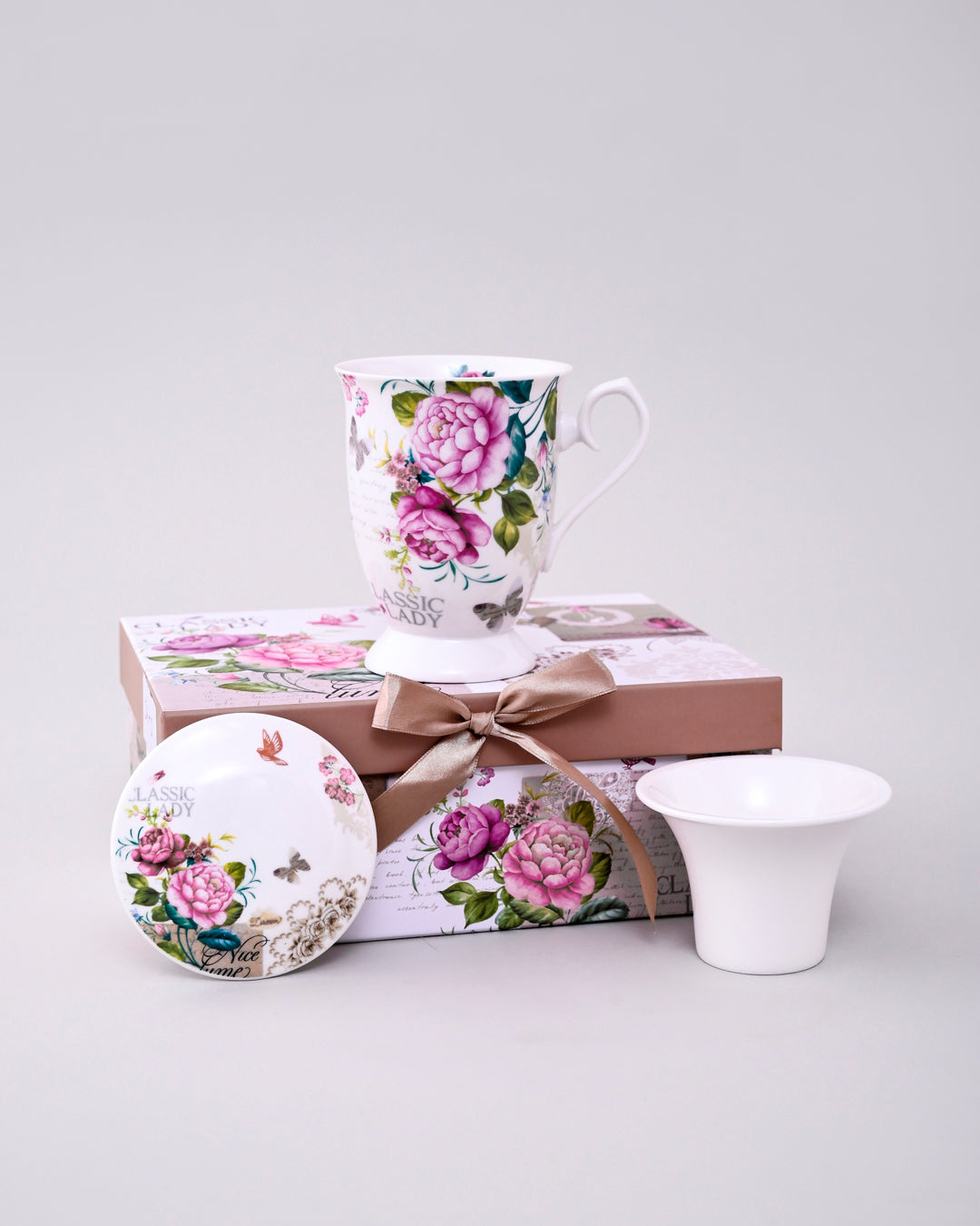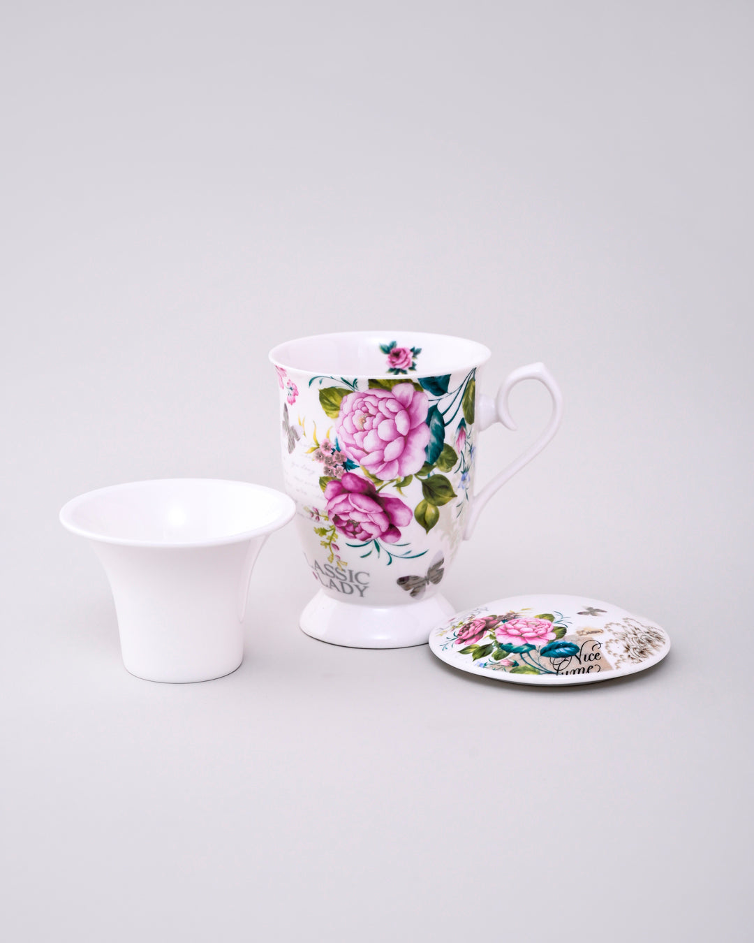 Bring elegance and convenience to your tea time with this beautifully designed Infuser Tea Mug. Crafted from premium-quality ceramic, it comes with a removable infuser and matching lid, making it perfect for brewing loose-leaf tea with ease. The fine floral patterns and artistic prints add a touch of sophistication, while the sturdy handle ensures a comfortable grip.