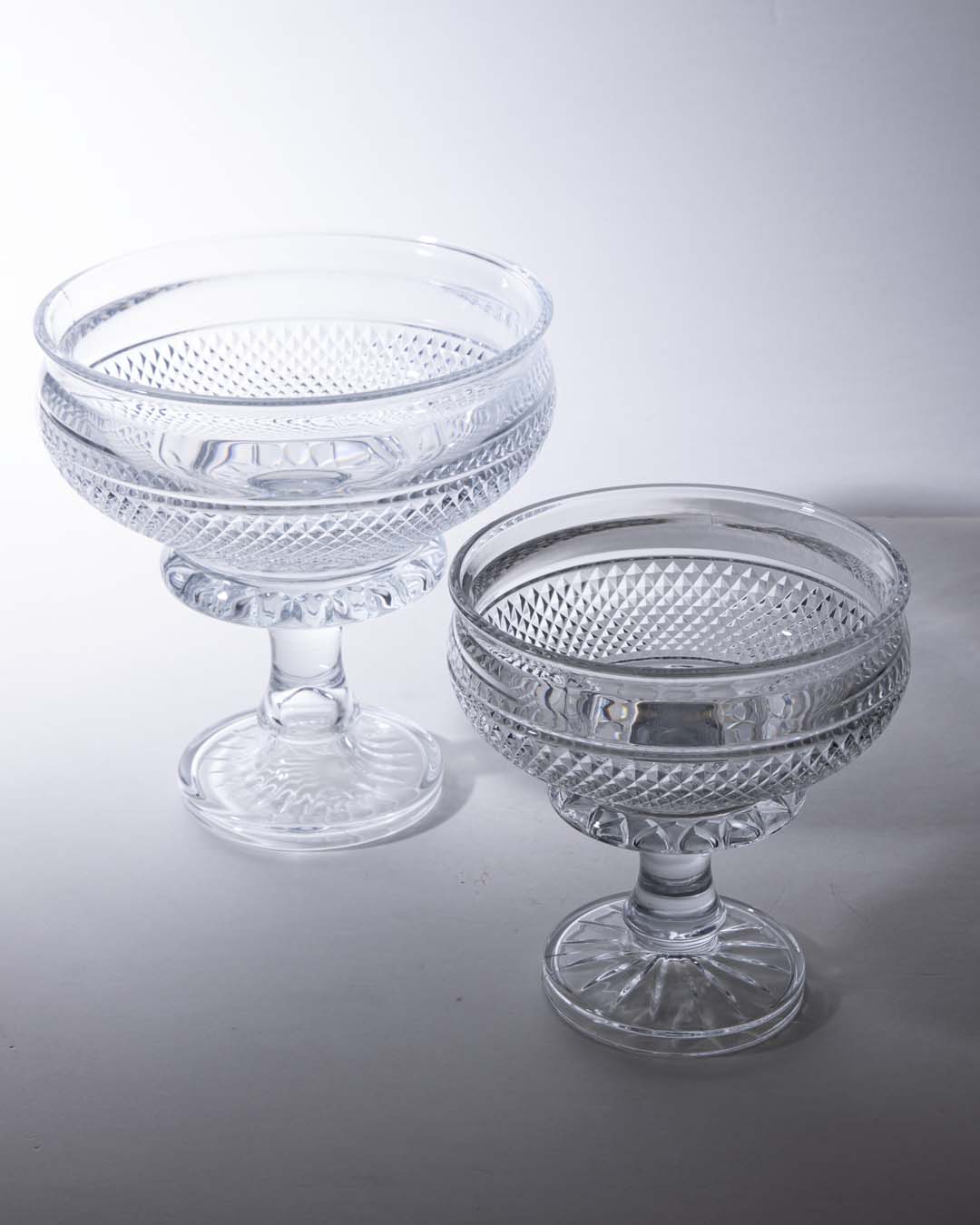 Upgrade your home decor with our Footed Crystal Fruit Bowl! Made from beautiful crystal glass, its stunning cut design adds a touch of elegance to any table. Perfect for displaying fresh fruits and adding a touch of sophistication to your dining experience.
