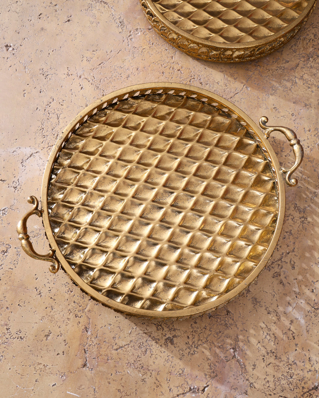 Elevate your home decor with our elegant Gold Baroque Serving Tray. Crafted with intricate baroque designs and a luxurious gold finish, this tray adds a touch of sophistication to any room. Perfect for entertaining guests or displaying your favorite items, this tray is a must-have for any stylish home.