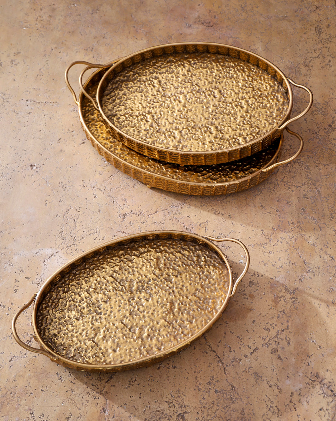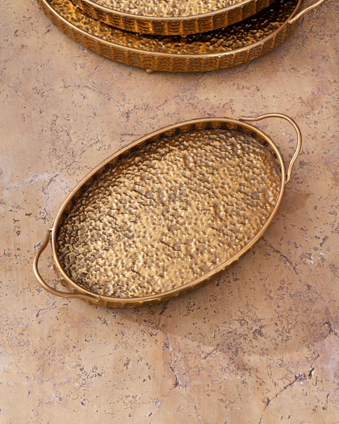 As a product expert, I can confidently assert that our Gold Hammered Serving Tray is a must-have for any host or hostess. Made from high-quality materials, it boasts a luxurious gold hammered design. Use it to elevate your entertaining game and impress your guests.