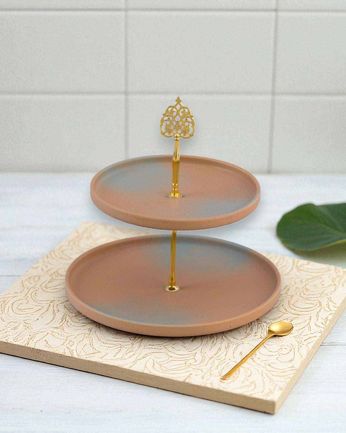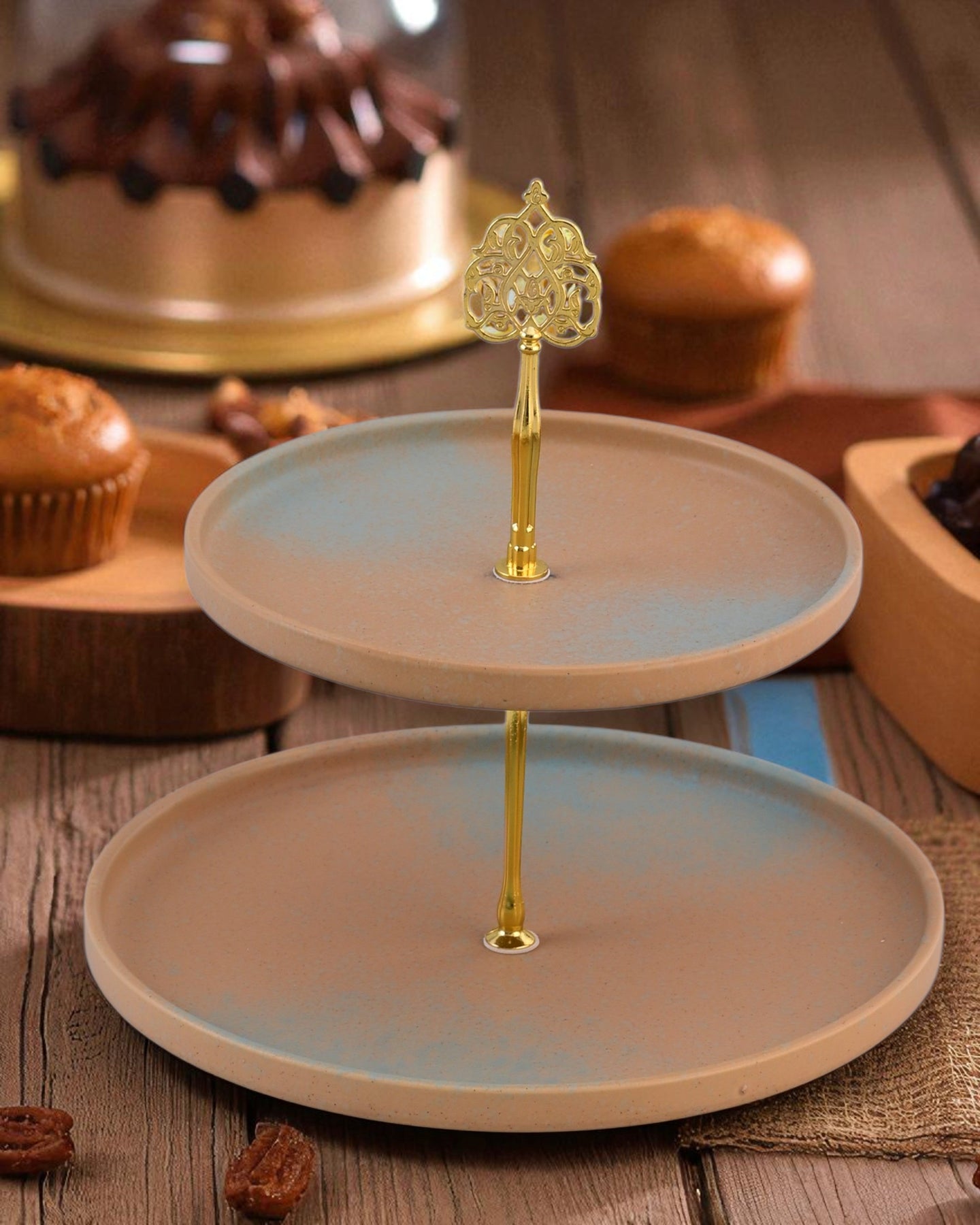 Golden Drift Matte 2-Tier Cake Stand