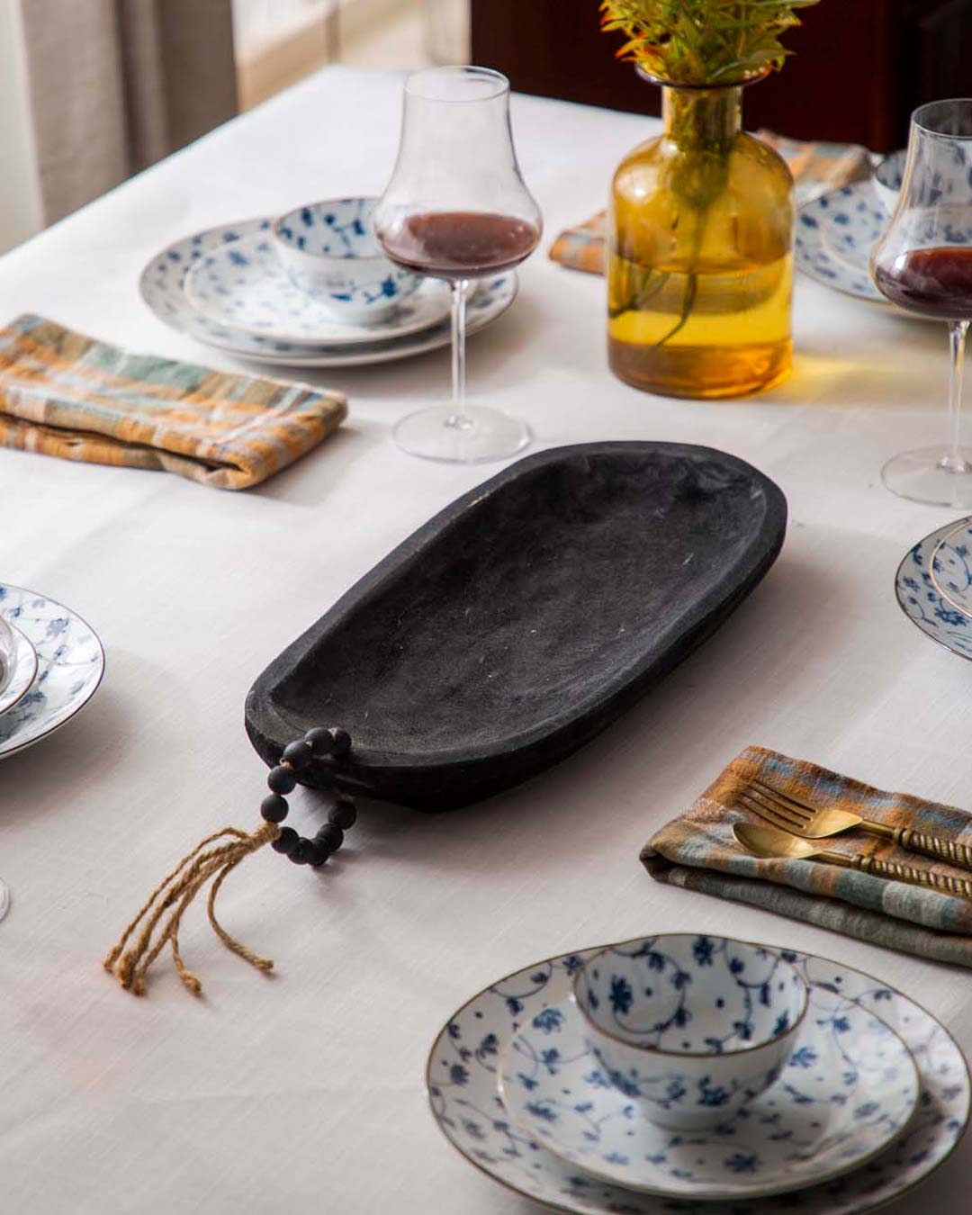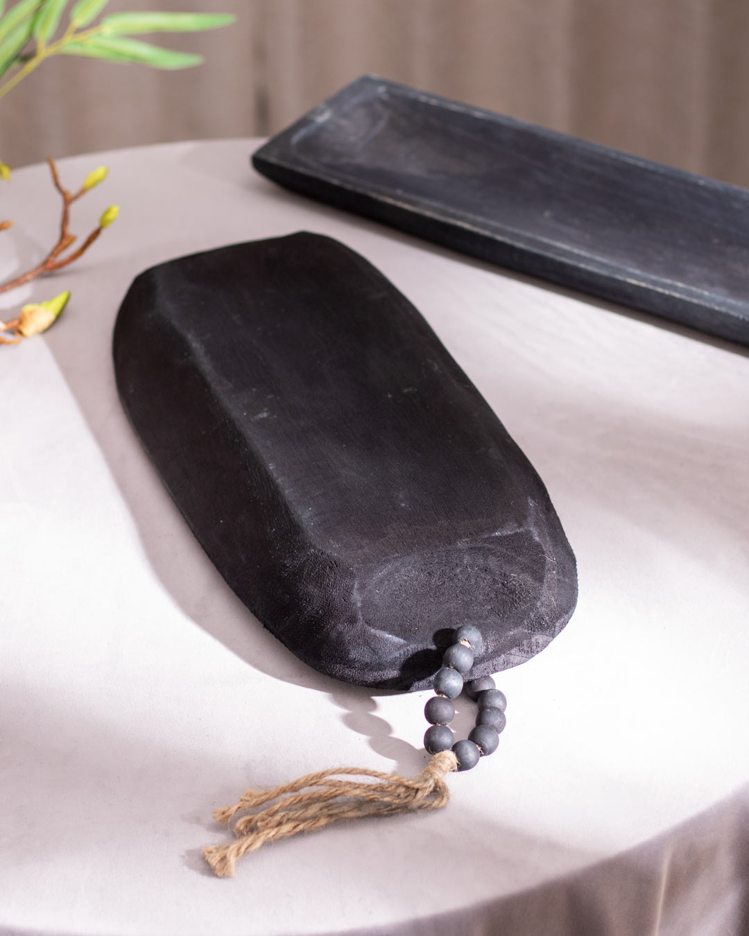 Elevate your kitchen and table decor with our meticulously handcrafted Hanlin Wooden Tray. Its sophisticated black color complements any setting, while its lightweight design makes it easy to carry and serve with ease.