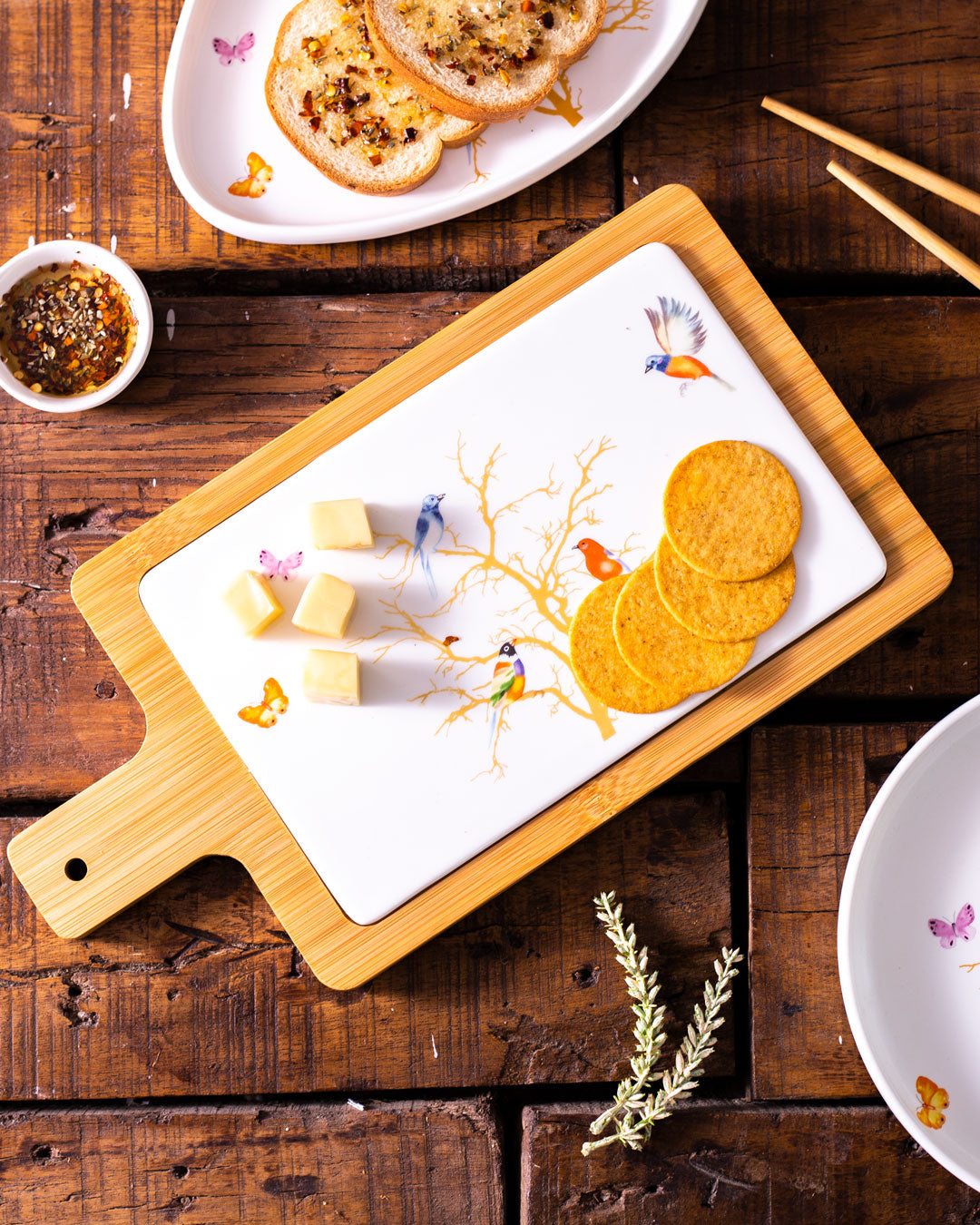 “Hummingbird” Rectangle White Fruit & Cheese Platter