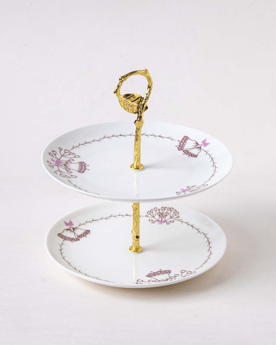 Use these dainty cake stands to serve your favorite desserts and hors-d'oeuvres. Our 2-tier cake stand adds a touch of elegance to any occasion, from an elegant dinner to a casual gathering. Perfect for desserts, pastries, and finger foods. This classic accessory gives your tabletop the ideal presentation at your next party.