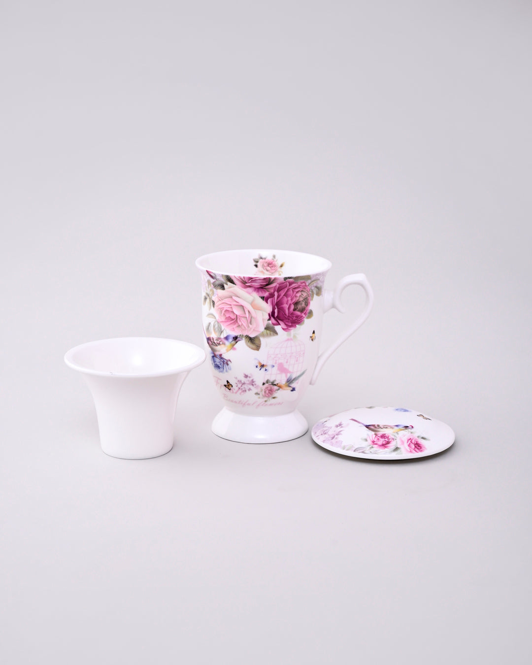 Bring elegance and convenience to your tea time with this beautifully designed Infuser Tea Mug. Crafted from premium-quality ceramic, it comes with a removable infuser and matching lid, making it perfect for brewing loose-leaf tea with ease. The fine floral patterns and artistic prints add a touch of sophistication, while the sturdy handle ensures a comfortable grip.
