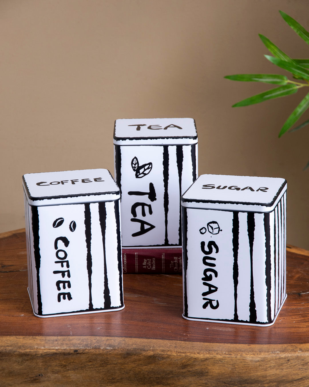 Make storing your everyday essentials an art with these quirky and stylish tin containers. This set of canisters adds a playful yet modern charm to your kitchen. Perfect for storing coffee, tea, and sugar or even cakes, cookies, or your favorite little knick, knacks they're as versatile as they are eye catching. Place them on your countertop to declutter your space and instantly uplift your kitchen vibe.