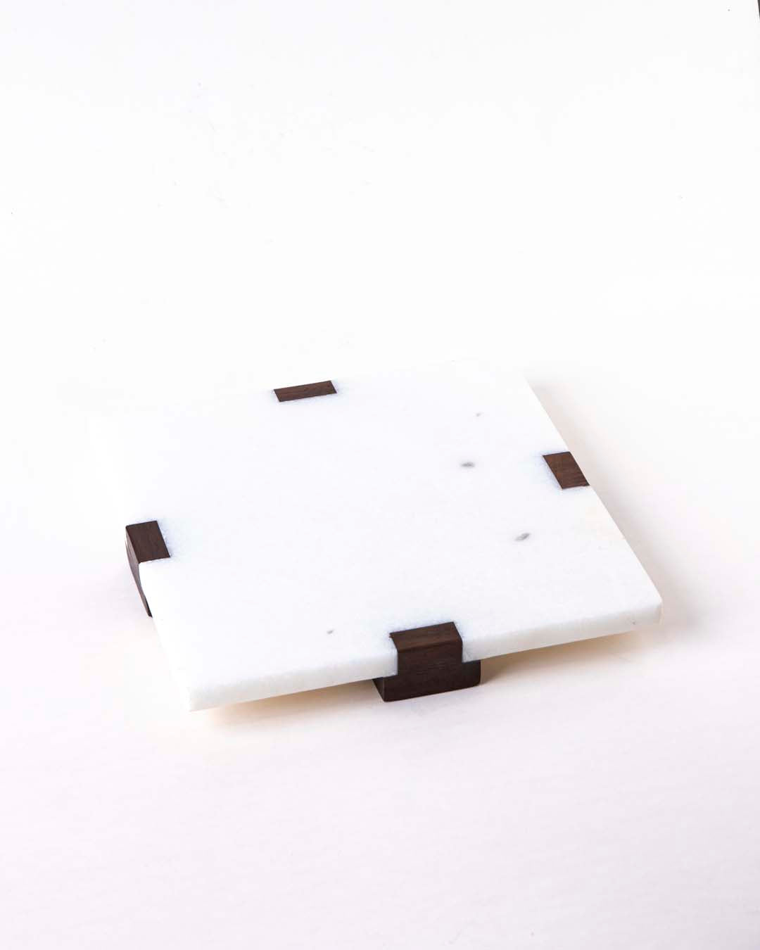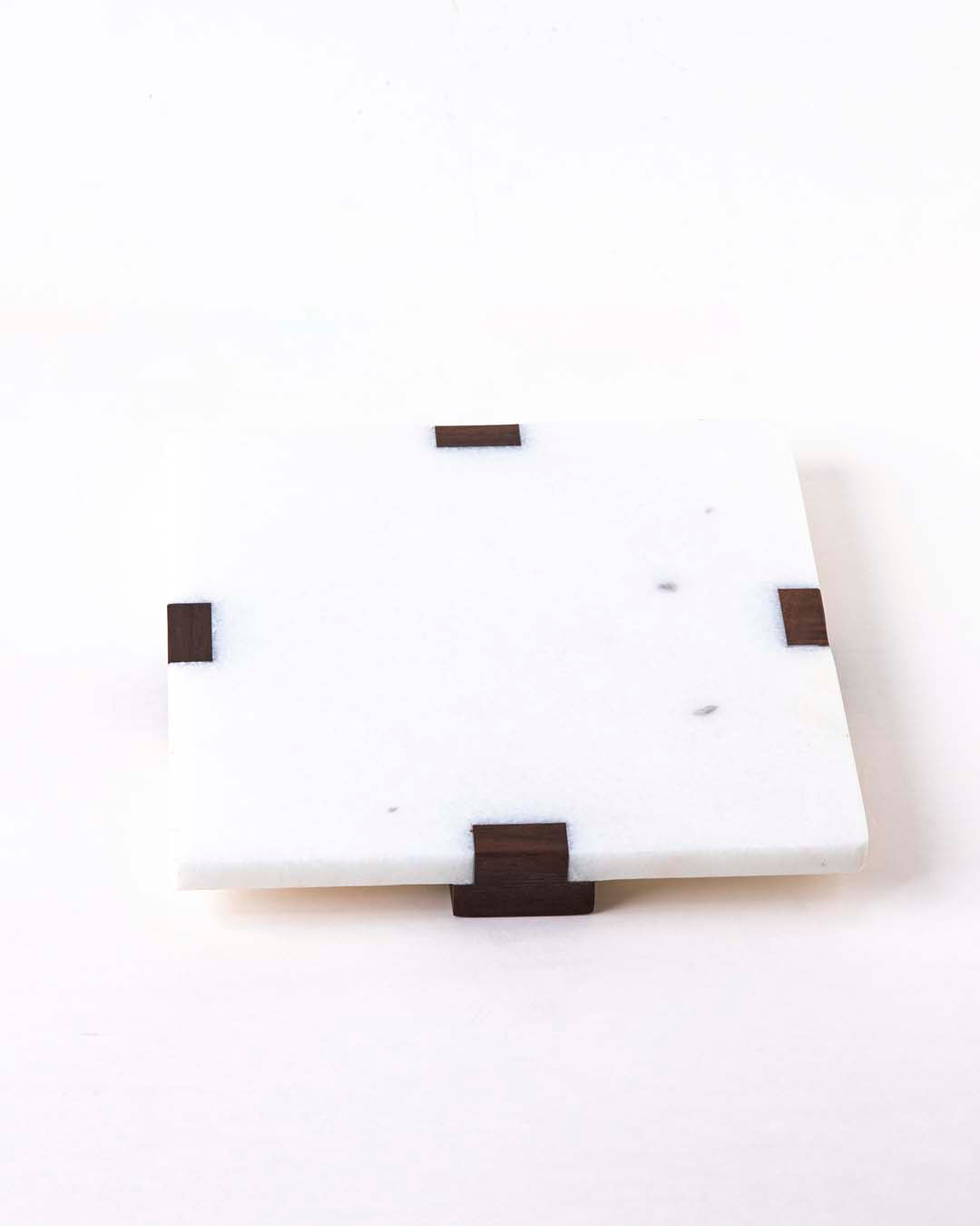 This elegant marble serving Tray, elevated with wooden corner accents, is perfect for presenting a variety of cheeses, crackers, and fruits. Its smooth, cool surface helps keep foods fresh, while the minimalist design adds a sophisticated touch to any gathering or dinner party.