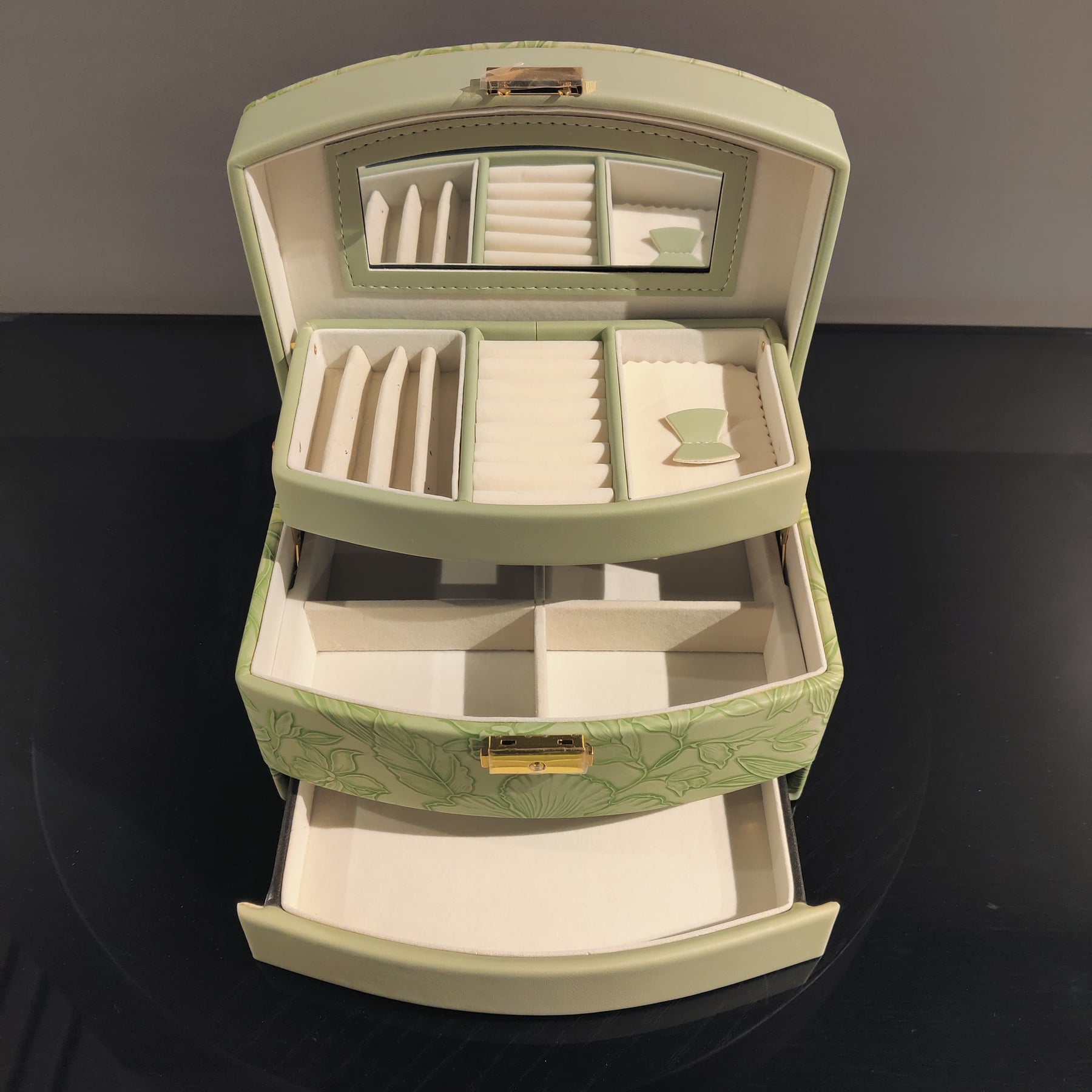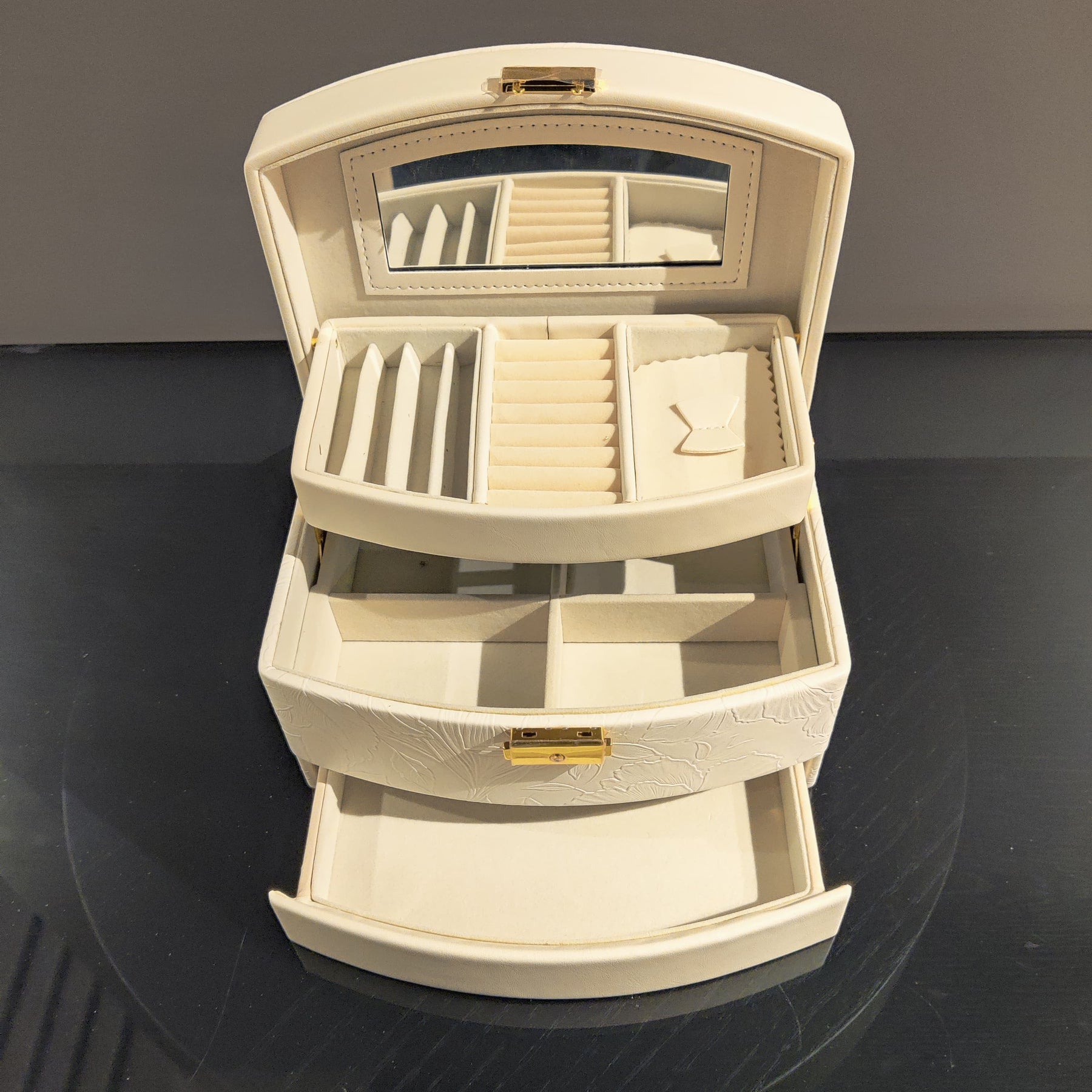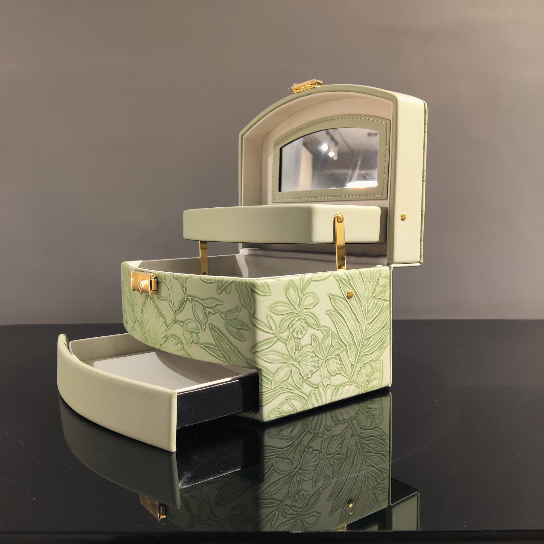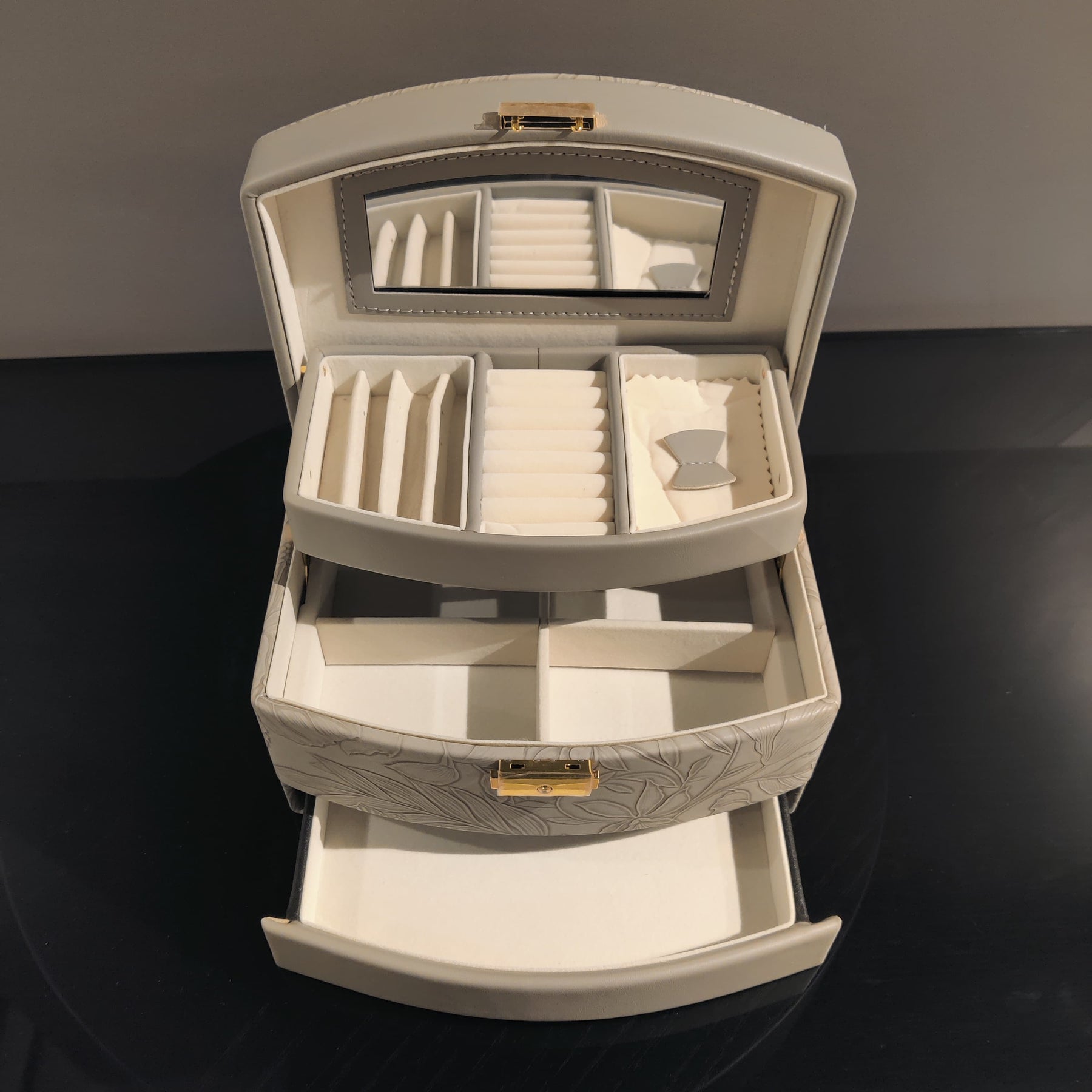 The integrated mirror makes accessorizing convenient, while the secure locking system keeps your valuables safe. Whether placed on your vanity or packed for travel, this organizer adds a sophisticated touch to your collection.