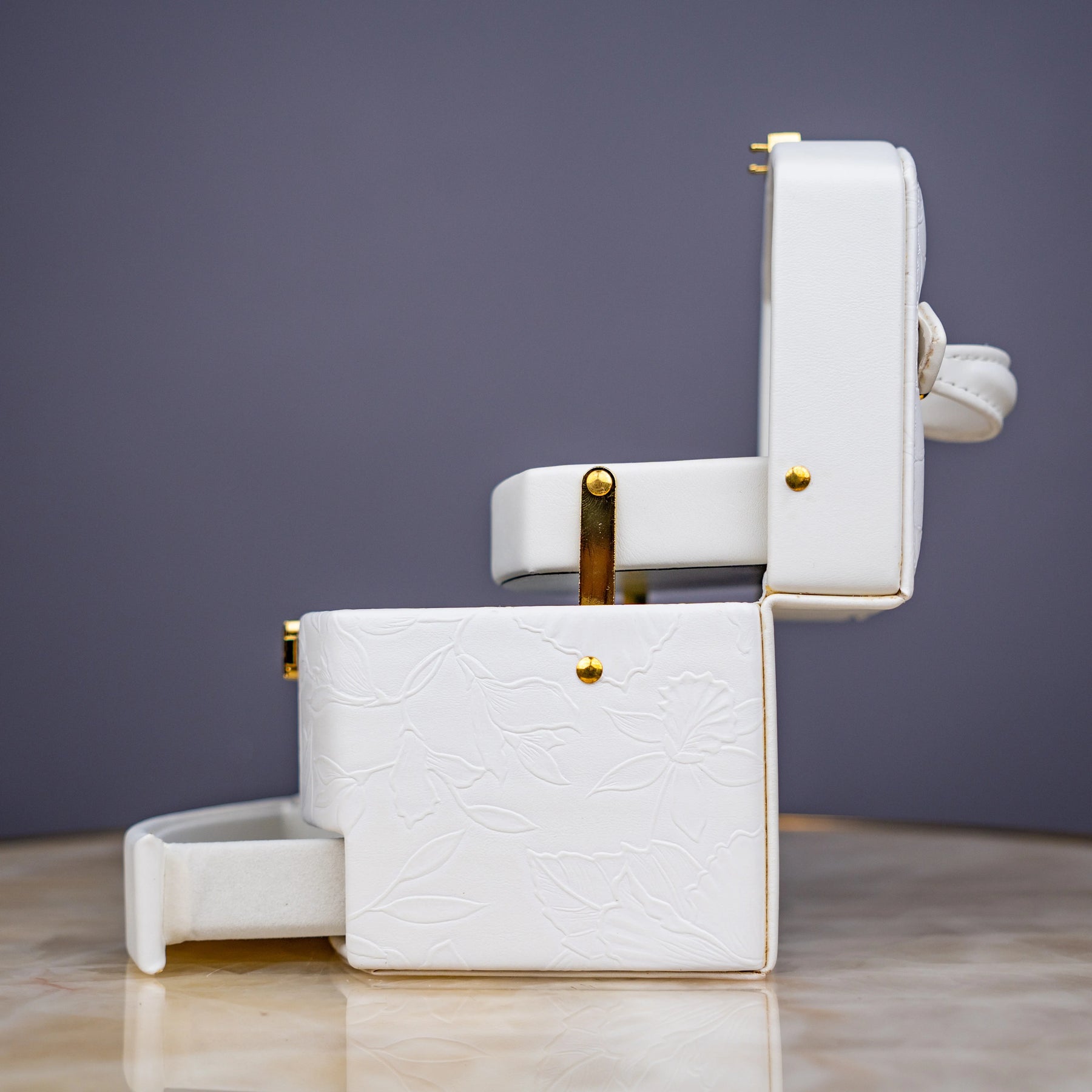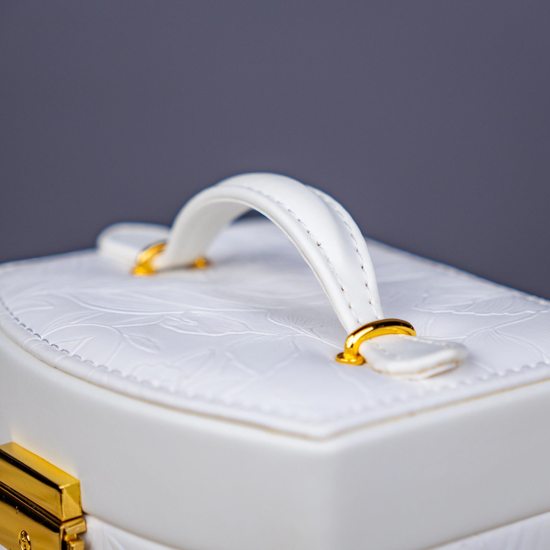 • 🤍 Chic Design – White floral embossed exterior with luxurious gold accents.