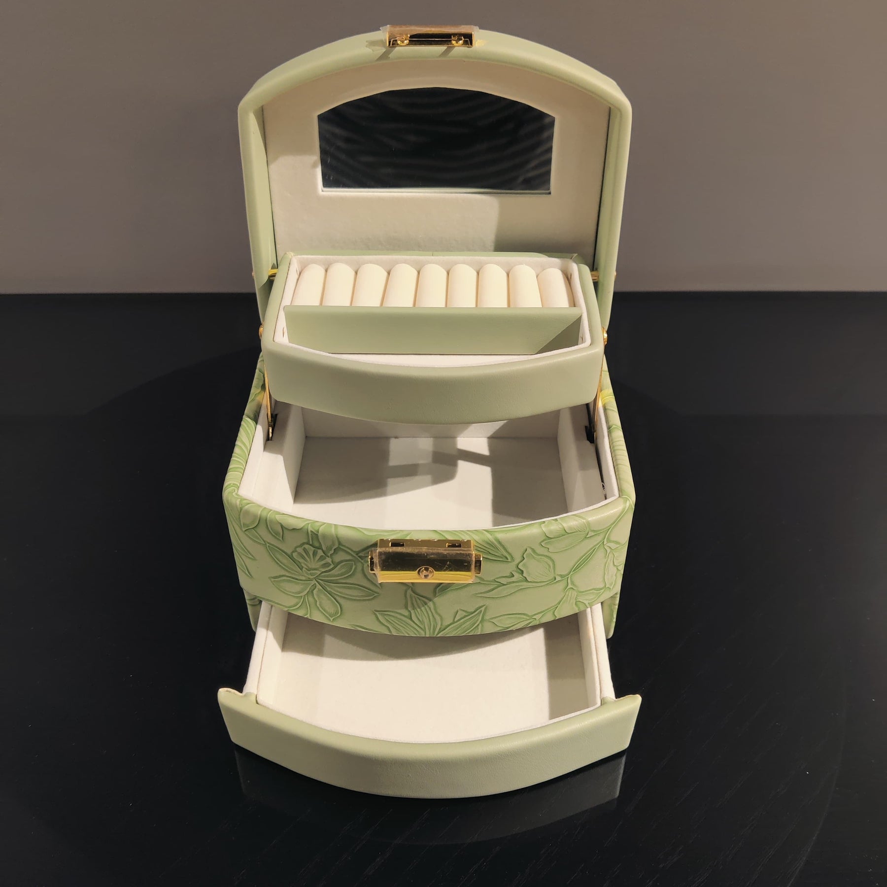 The built-in mirror adds a touch of convenience, making it easy to accessorize on the go. When closed, this organizer maintains a sleek, compact profile, while the secure lock ensures that your valuables remain safe and protected. Whether displayed on a dresser or packed for travel, itβs the ultimate blend of sophistication and functionality.