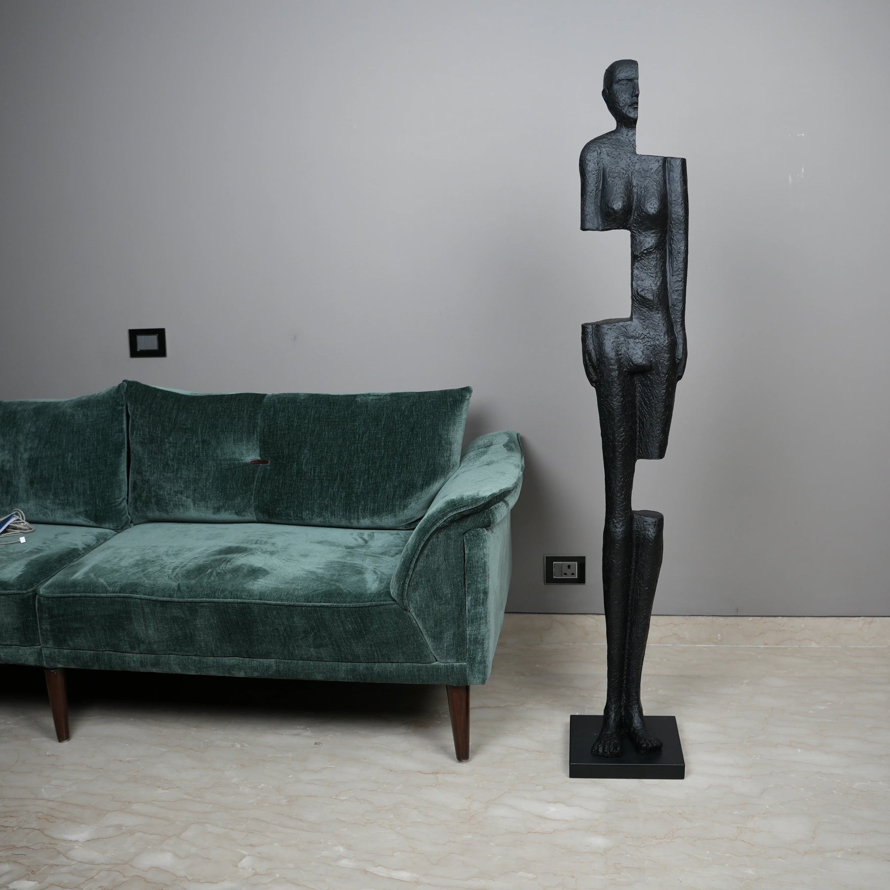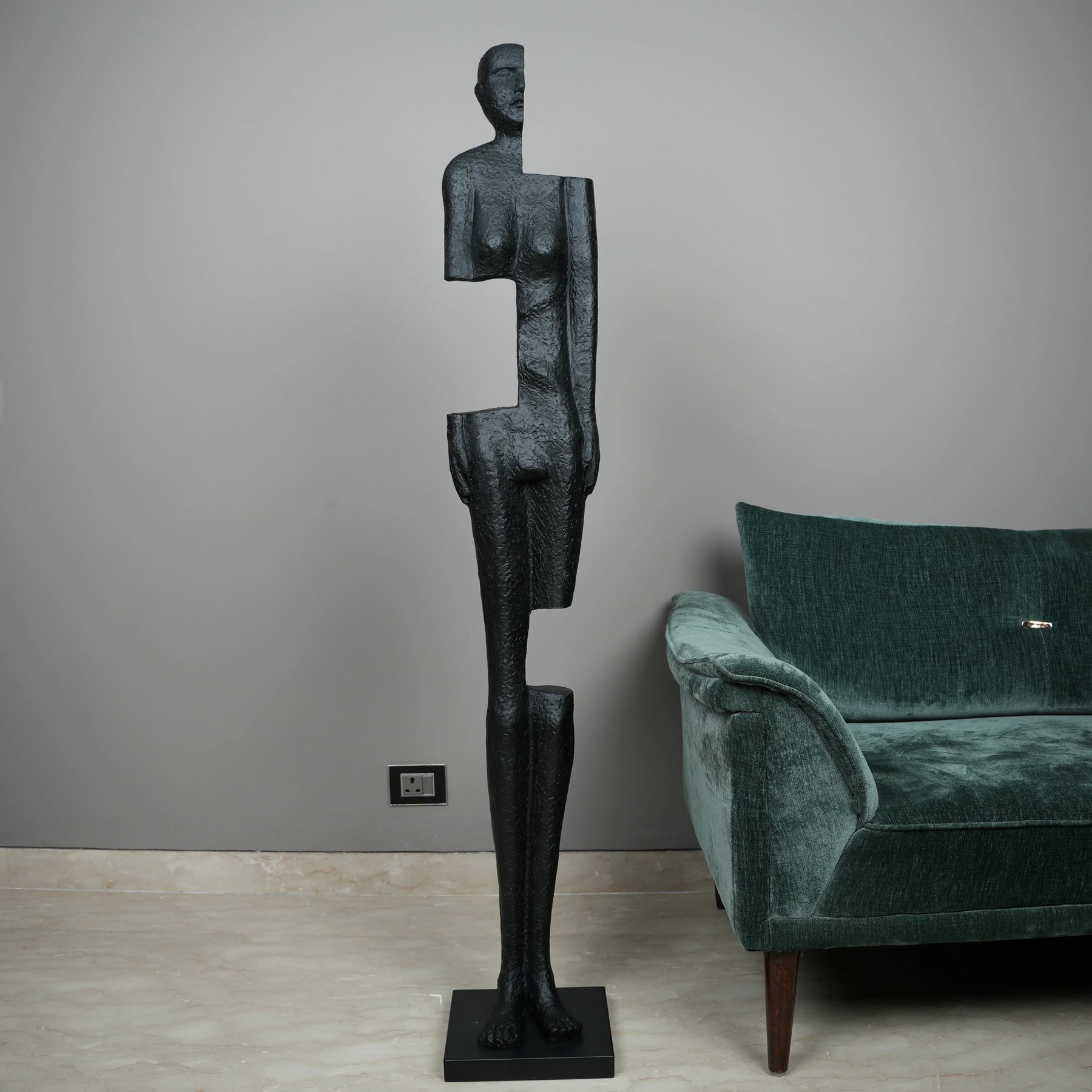 Merging mystery with minimalism, the Fragmented Grace Floor Sculpture is a compelling addition to any modern space. Its abstract, half-formed silhouette in textured matte black creates a bold visual narrative β€” a perfect conversation starter for living rooms, studios, or gallery-inspired corners.