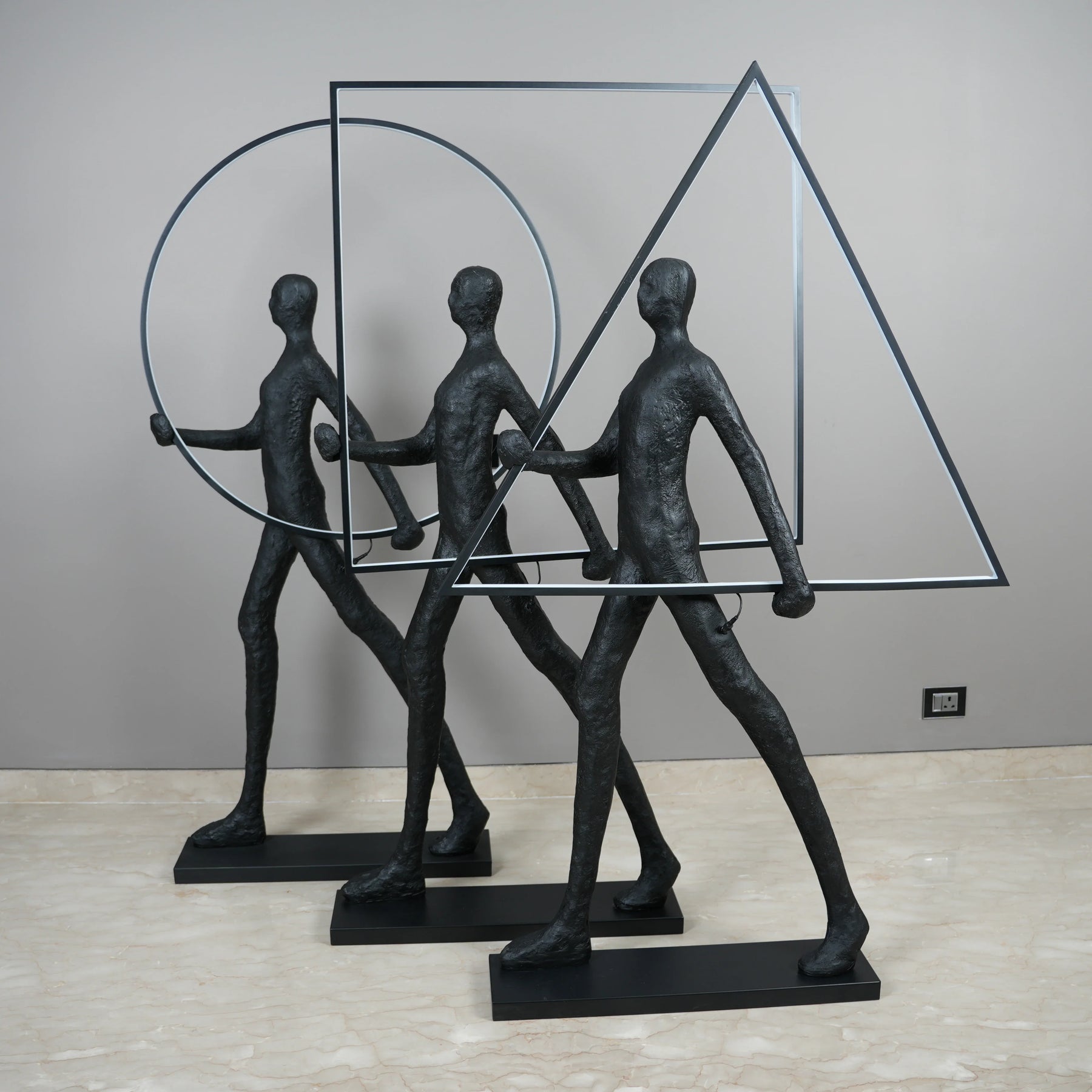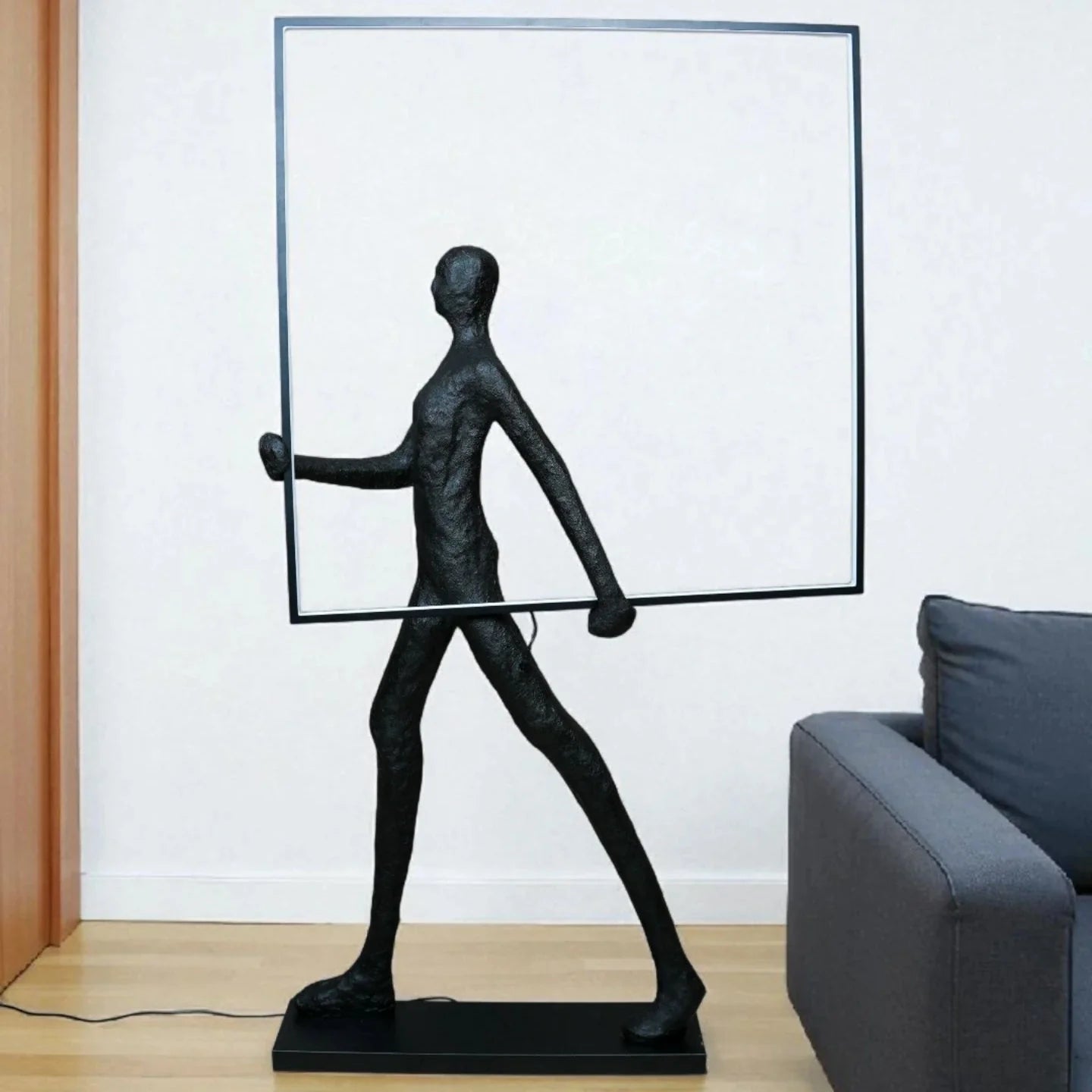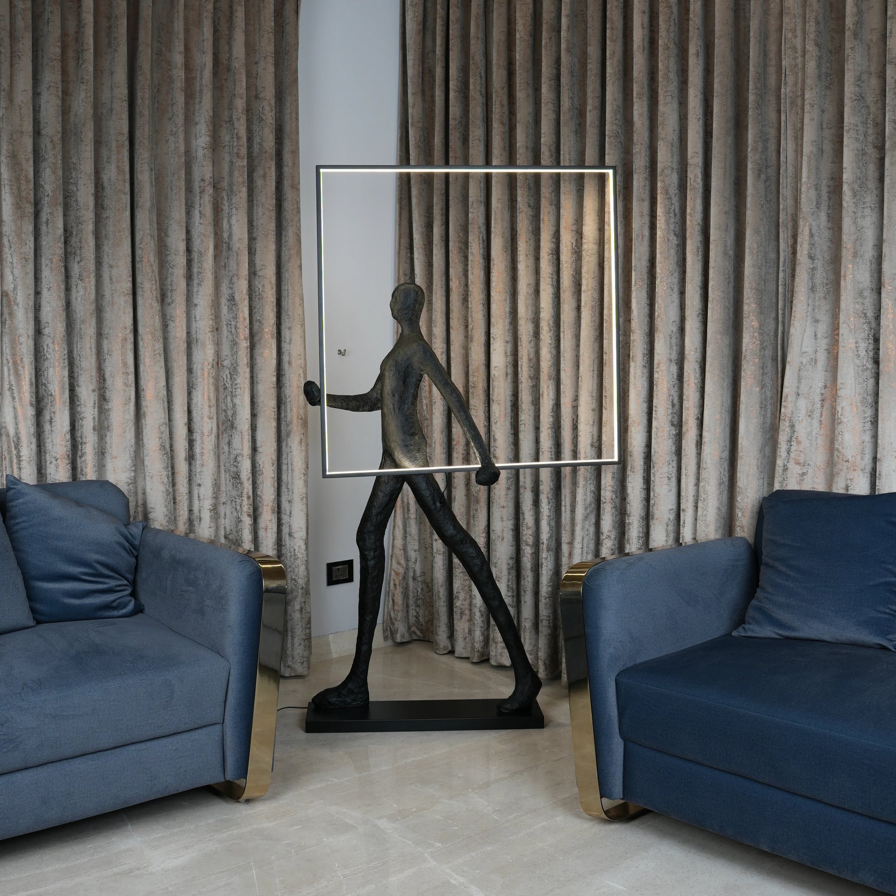 Introduce a bold artistic statement to your interiors with the Frame Walker Art Sculpture. Featuring a textured, abstract human figure striding confidently through a metallic square frame, this large-scale piece adds a sense of movement and modern drama to any space. Ideal for luxury living rooms, gallery-inspired interiors, or statement lobbies, it redefines contemporary sculpture with grace and geometric contrast.