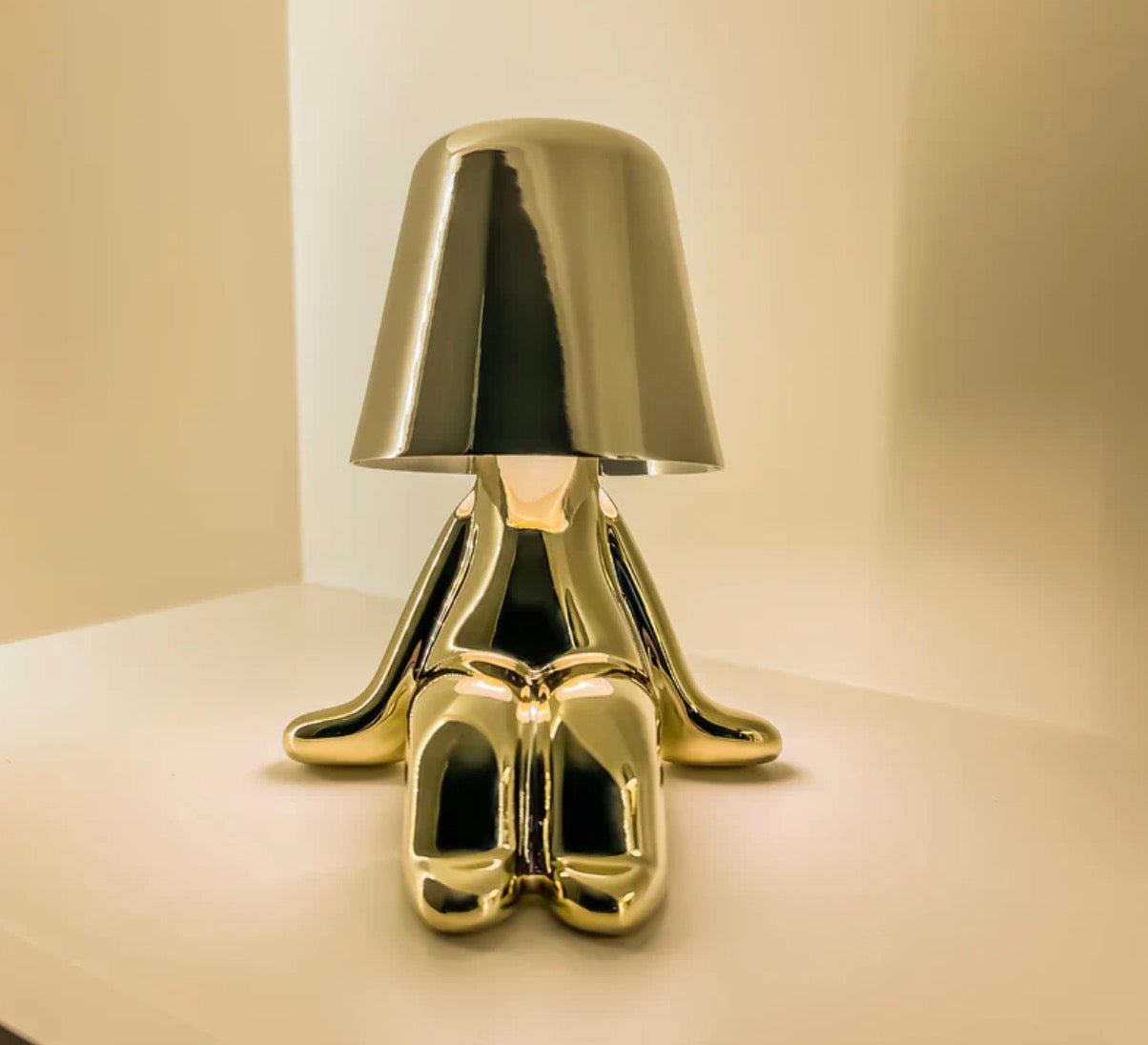 Illuminate your space with the playful charm of the Golden Boy Sitting Table Lamp. This unique design features a chic figure seated gracefully, doubling as both a functional lamp and an artistic decor piece. Its sleek golden finish adds a touch of luxury, making it a standout addition to any modern or eclectic interior.