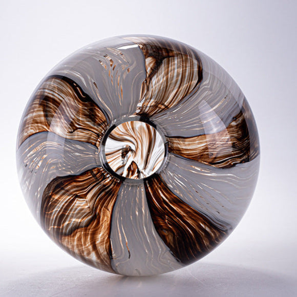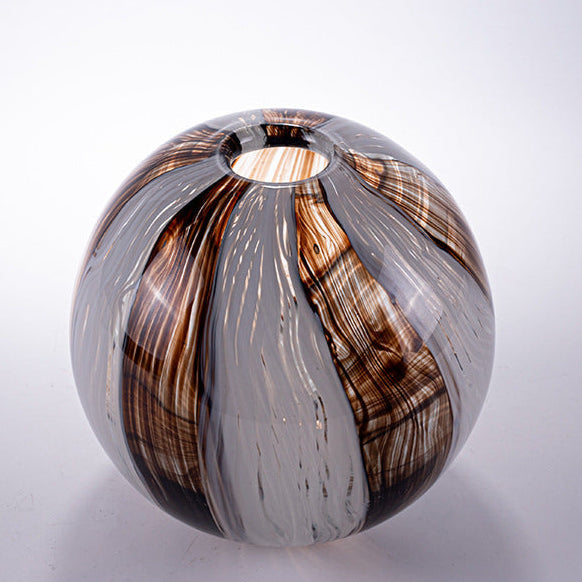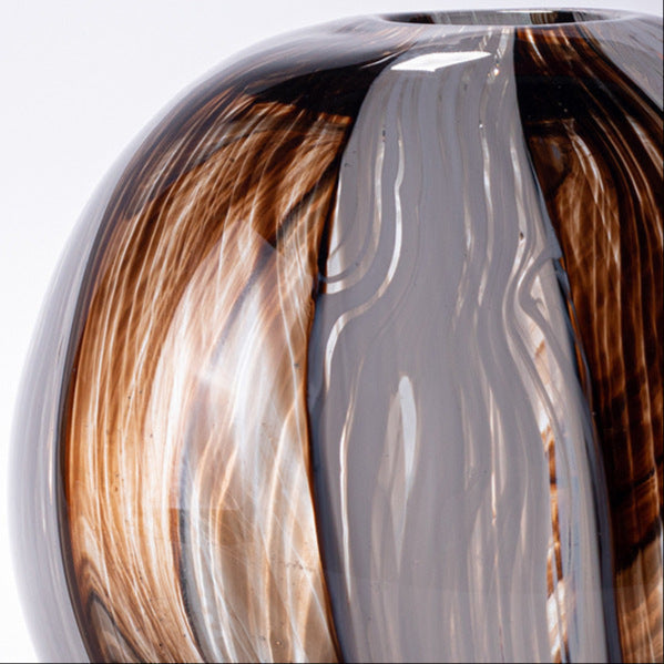 Bring an artistic touch to your space with the Bronze Elegance Striped Artisan Vase, a stunning decor piece that seamlessly blends elegance and creativity. Thoughtfully designed with handcrafted glass and featuring a white base accented by bronze stripes, this vase exudes timeless sophistication.