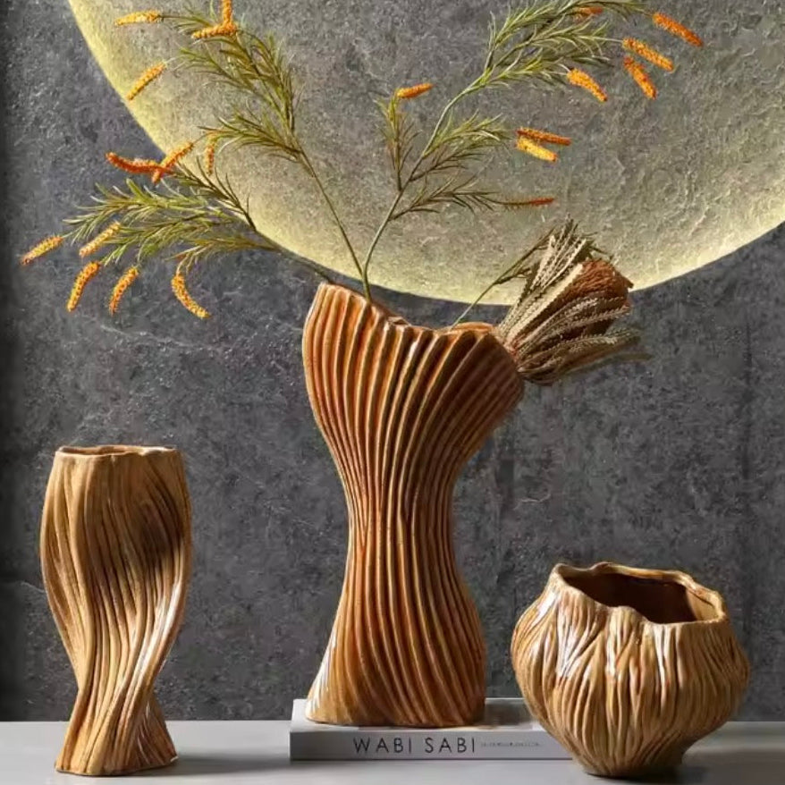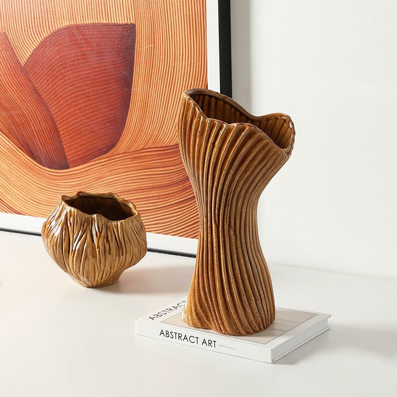 The Elegant Brown Ceramic Vase – Timeless Decor Accent is a striking example of modern design, crafted to enhance the elegance of any space. Made with premium wooden with leather, this piece features a nan finish that blends effortlessly with contemporary aesthetics. Standing at 17 cm with dimensions of 20.0 cm (Width) and 20 cm (Length), it is both functional and visually captivating. Whether placed as a centerpiece in your living room or as an accent in your workspace, the Elegant Brown Ceramic Vase – Timeless Decor Accent adds a unique artistic touch to any environment. A Statement of Style and FunctionalityThe sleek lines and durable construction of the Elegant Brown Ceramic Vase – Timeless Decor Accent make it a timeless addition to any décor. Designed to harmonize with its surroundings, this piece reflects thoughtful craftsmanship and attention to detail, ensuring it remains a conversation starter for years to come. Versatile and Thoughtful DécorWith its ideal dimensions, the Elegant Brown Ceramic Vase – Timeless Decor Accent can be placed on a console table, shelf, or desk, offering flexibility in placement. Its minimalist aesthetic ensures it complements both modern and traditional interiors, making it an excellent choice for any space. Product Features:✅ Premium Material: wooden with leather, ensuring durability and elegance.🌟 Elegant Finish: Showcasing a nan tone for versatile style.🌟 Perfect Height: Standing at 17 cm for a striking presence.🎨 Ideal Length: Measuring 20 cm to fit seamlessly into any decor.🏠 Compact Width: Designed at 20.0 cm for easy placement.✨ Versatile Decor: Suitable for homes, offices, and curated spaces.🎨 Timeless Design: Elevates modern and contemporary aesthetics.
