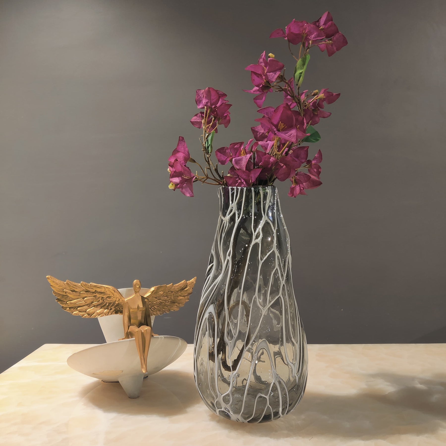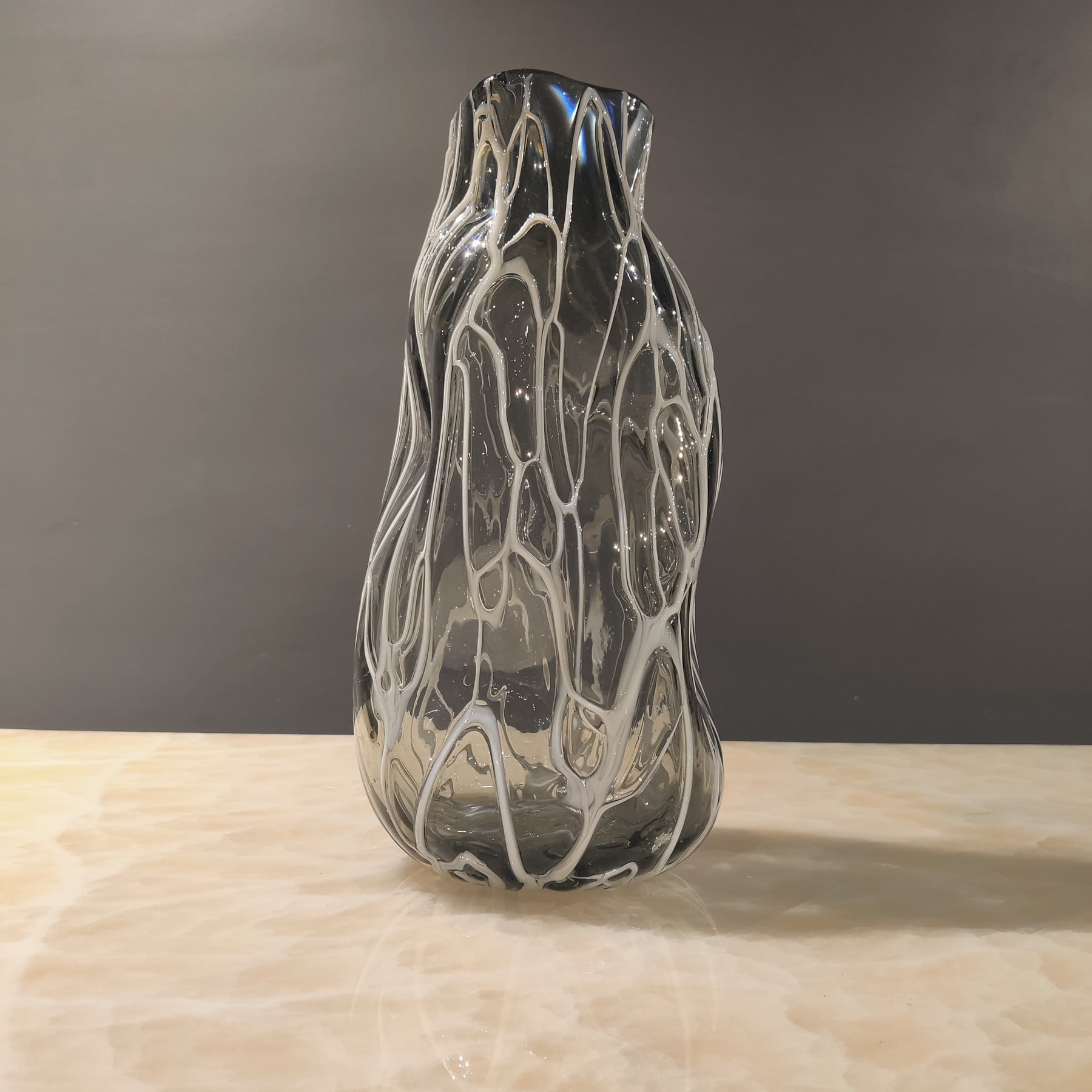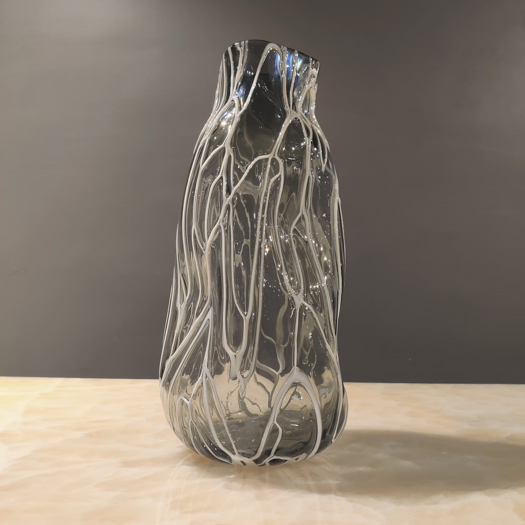 A masterpiece of fluid artistry, the Ethereal Flow Freeform Glass Vase embodies the beauty of organic movement and contemporary design. Crafted from premium clear glass, this vase features delicate white lines flowing in a freeform pattern, creating a visually captivating and unique decorative piece. Its fluid shape and artistic transparency make it an exceptional addition to modern, minimalist, and luxury interiors.