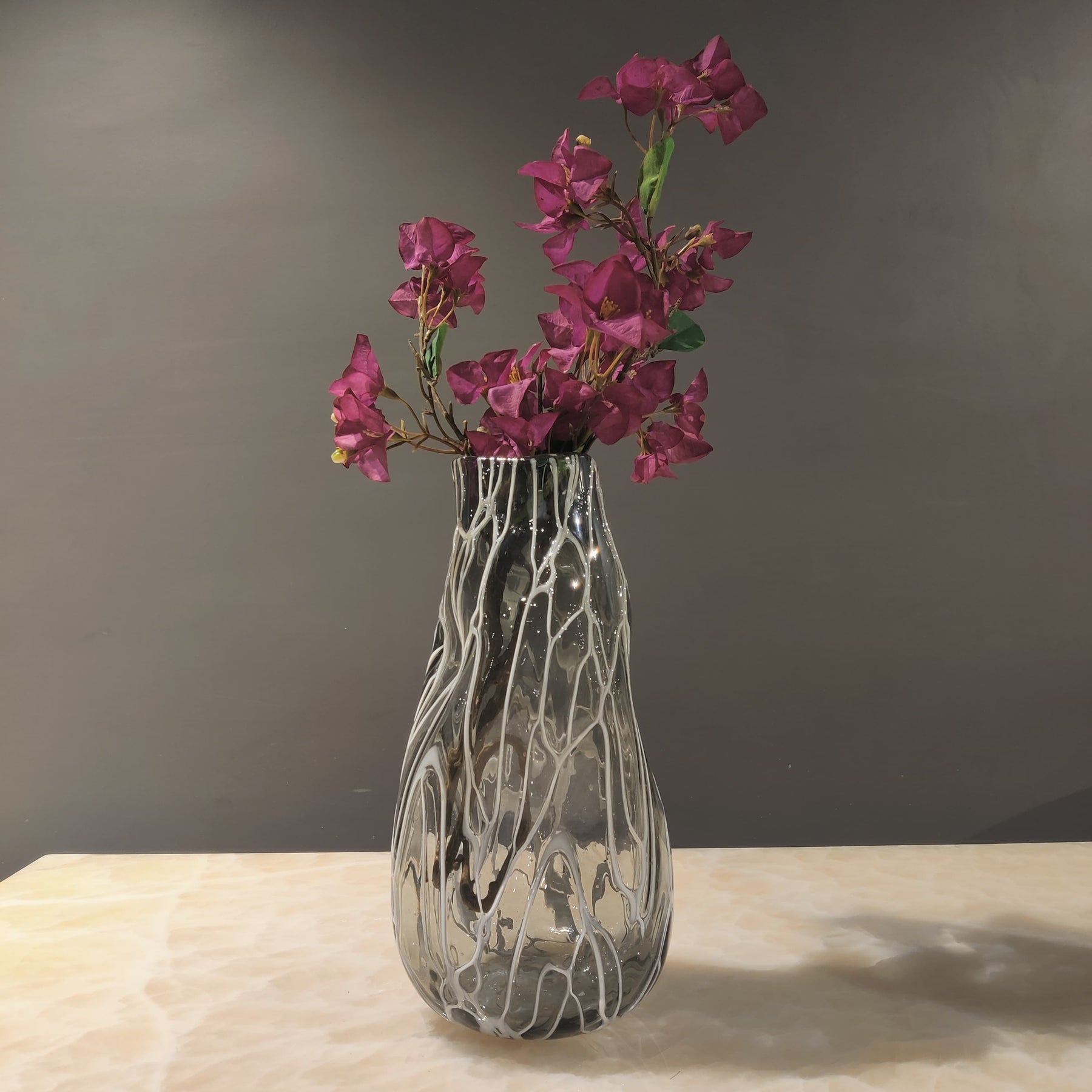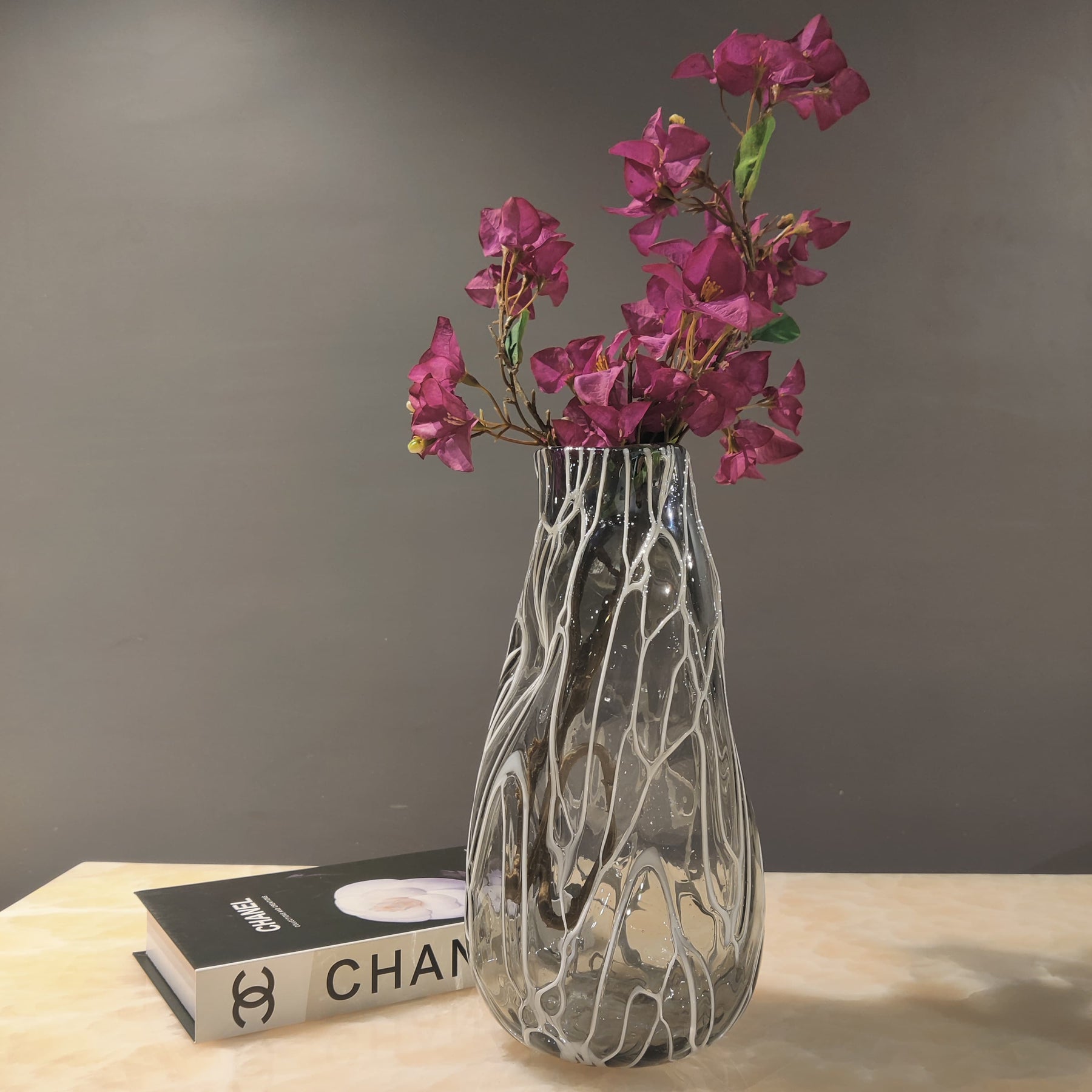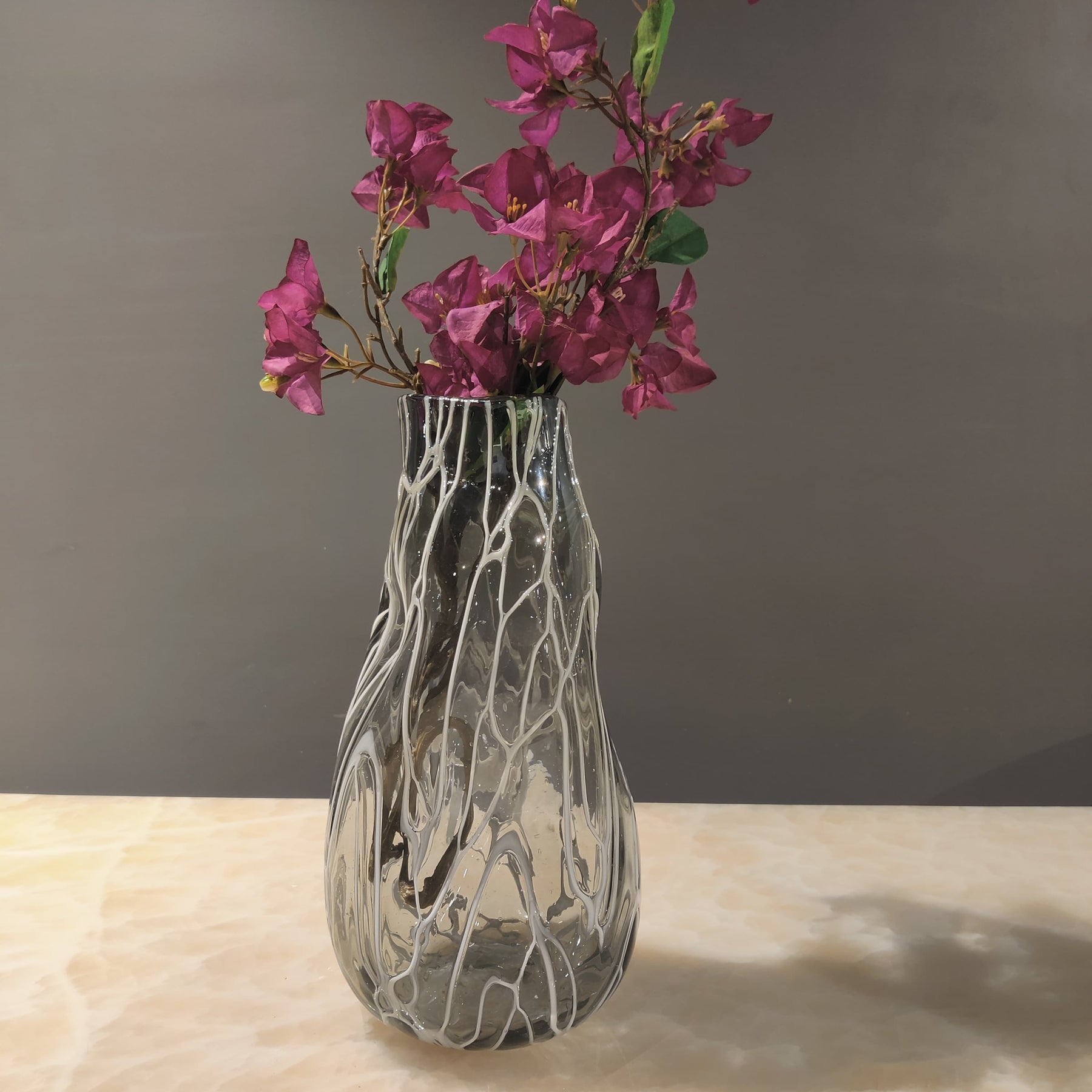 A masterpiece of fluid artistry, the Ethereal Flow Freeform Glass Vase embodies the beauty of organic movement and contemporary design. Crafted from premium clear glass, this vase features delicate white lines flowing in a freeform pattern, creating a visually captivating and unique decorative piece. Its fluid shape and artistic transparency make it an exceptional addition to modern, minimalist, and luxury interiors.