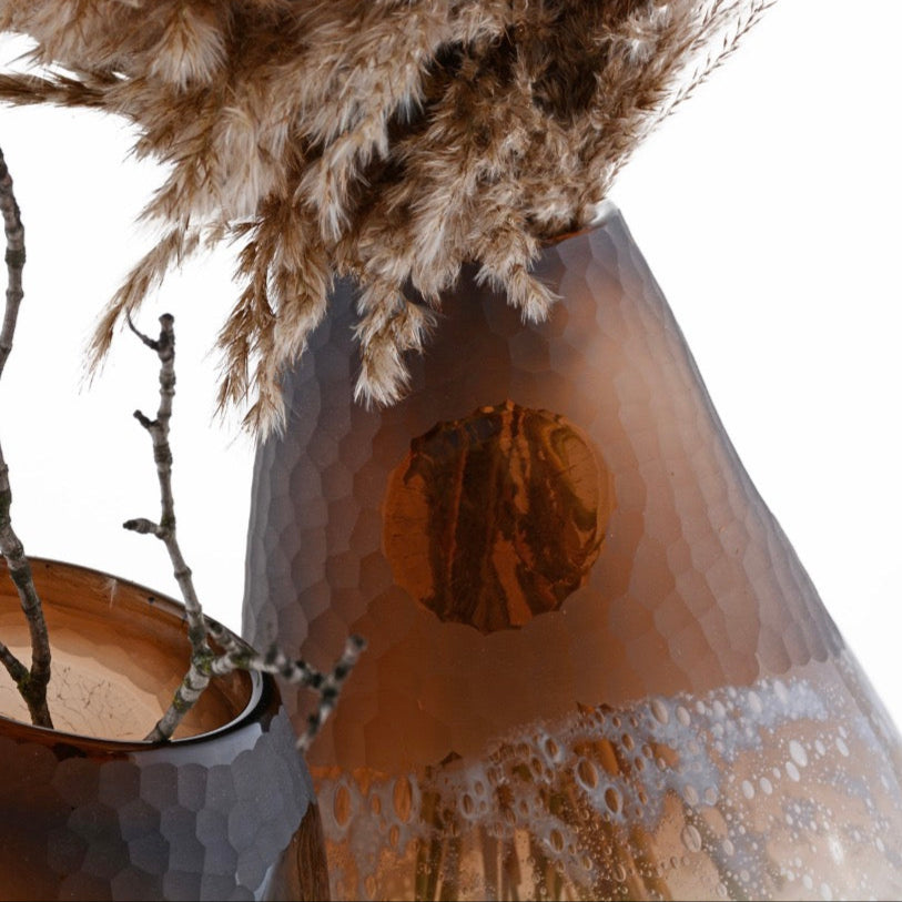 Perfect for dining room consoles, open shelves, or mantel displays, the Ethereal Gradient Brown Artisan Vase adds depth and warmth to your decor. Its impeccable craftsmanship and luxurious material make it a statement piece for any space.