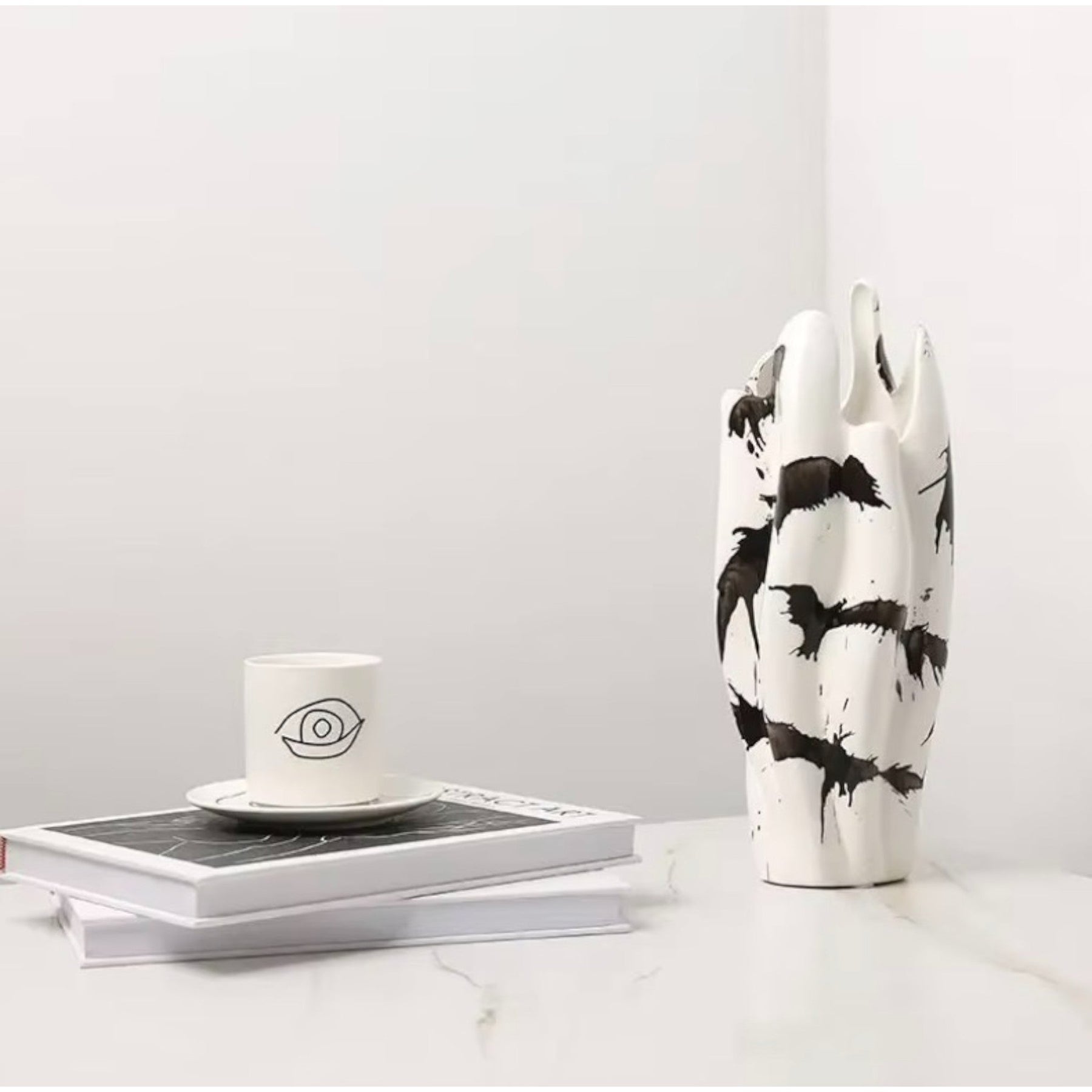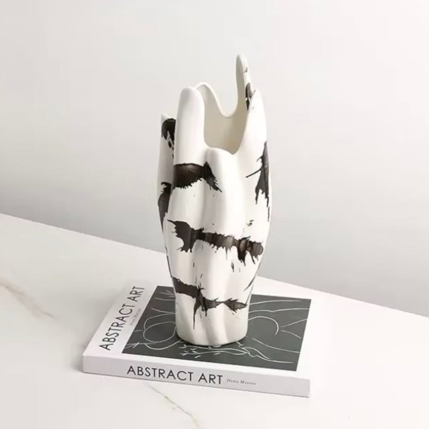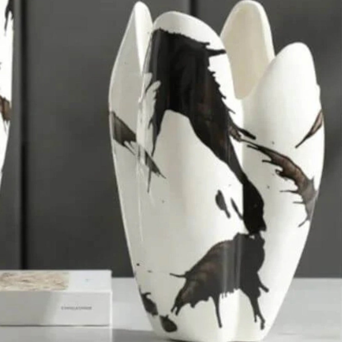 Embrace the artistry of modern design with the Impressionist Splash: Hand-Painted Black & White Vase, a true statement piece that effortlessly combines elegance and contemporary flair. Thoughtfully crafted from ceramic and meticulously hand-painted, this vase features dynamic black and white paint splatters that create a captivating visual texture, igniting imagination and creativity.