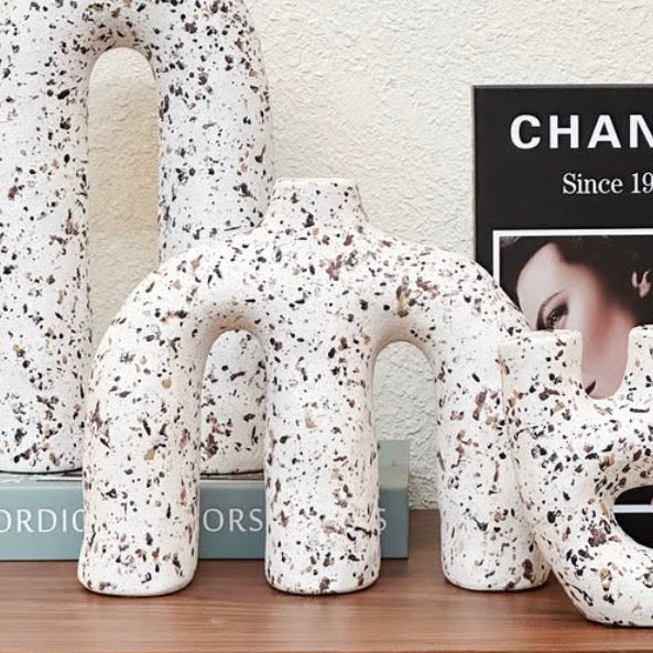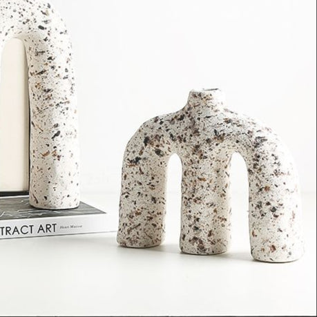 The Speckled Arch Ceramic Sculpture Vase is a striking example of modern design, crafted to enhance the elegance of any space. Made with premium ceramic with true gold painting, this piece features a nan finish that blends effortlessly with contemporary aesthetics. Standing at 21 cm with dimensions of 8.5 cm (Width) and 24 cm (Length), it is both functional and visually captivating. Whether placed as a centerpiece in your living room or as an accent in your workspace, the Speckled Arch Ceramic Sculpture Vase adds a unique artistic touch to any environment. A Statement of Style and Functionality The sleek lines and durable construction of the Speckled Arch Ceramic Sculpture Vase make it a timeless addition to any dΓ©cor. Designed to harmonize with its surroundings, this piece reflects thoughtful craftsmanship and attention to detail, ensuring it remains a conversation starter for years to come. Versatile and Thoughtful DΓ©cor With its ideal dimensions, the Speckled Arch Ceramic Sculpture Vase can be placed on a console table, shelf, or desk, offering flexibility in placement. Its minimalist aesthetic ensures it complements both modern and traditional interiors, making it an excellent choice for any space. Product Features:π Premium Material: ceramic with true gold painting, ensuring durability and elegance.πΊ Elegant Finish: Showcasing a nan tone for versatile style.β¨ Perfect Height: Standing at 21 cm for a striking presence.πΊ Ideal Length: Measuring 24 cm to fit seamlessly into any decor.β